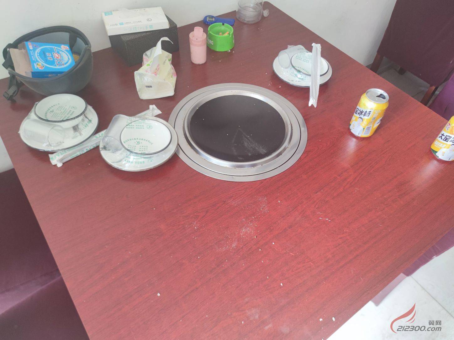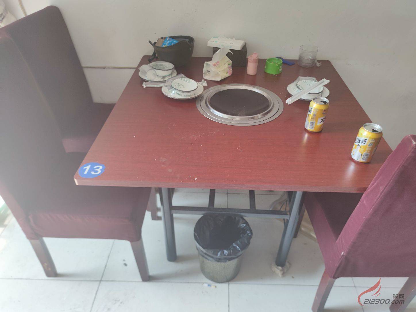火锅桌2张90cm*90cm高75cm带电磁炉和锅价格100元/张,椅子15元/张有10张