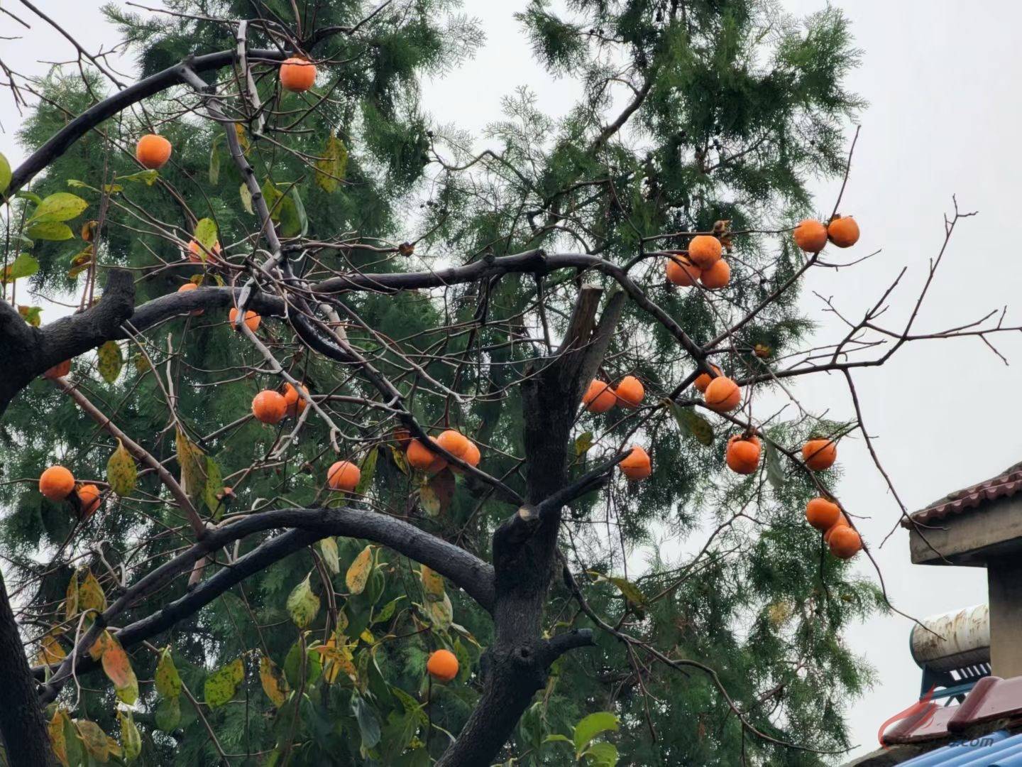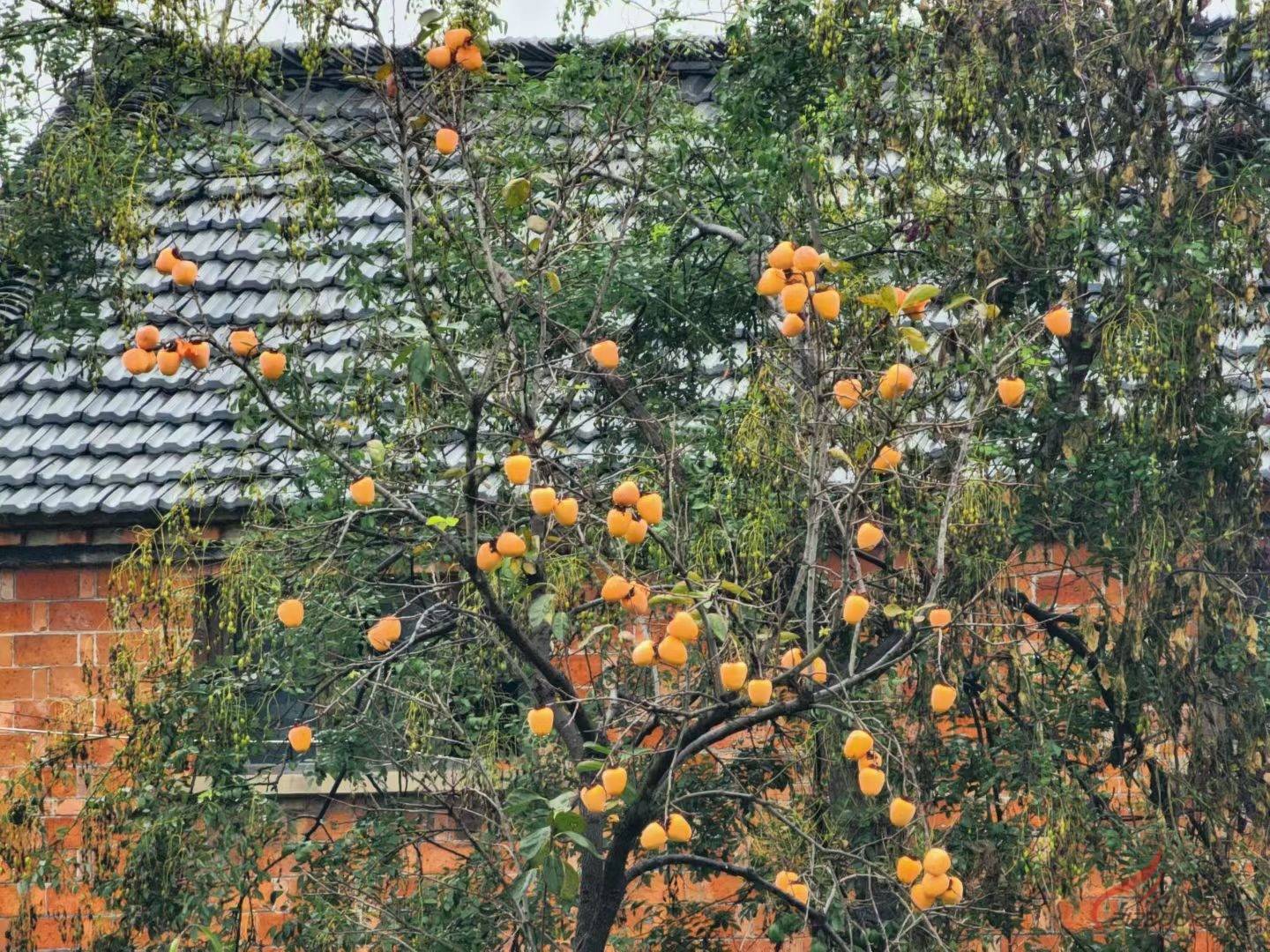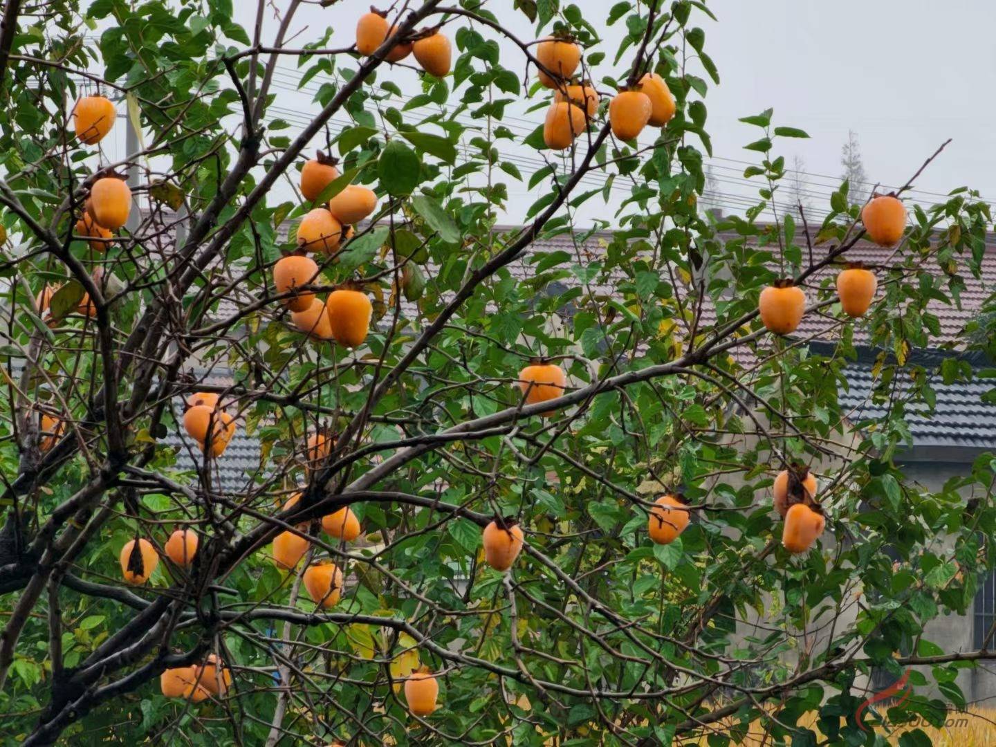 红彤彤的柿子挂在树上也太好看了,希望万柿如意