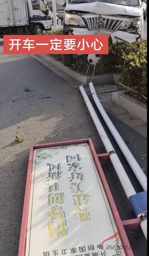 路边杆子都撞断了啊