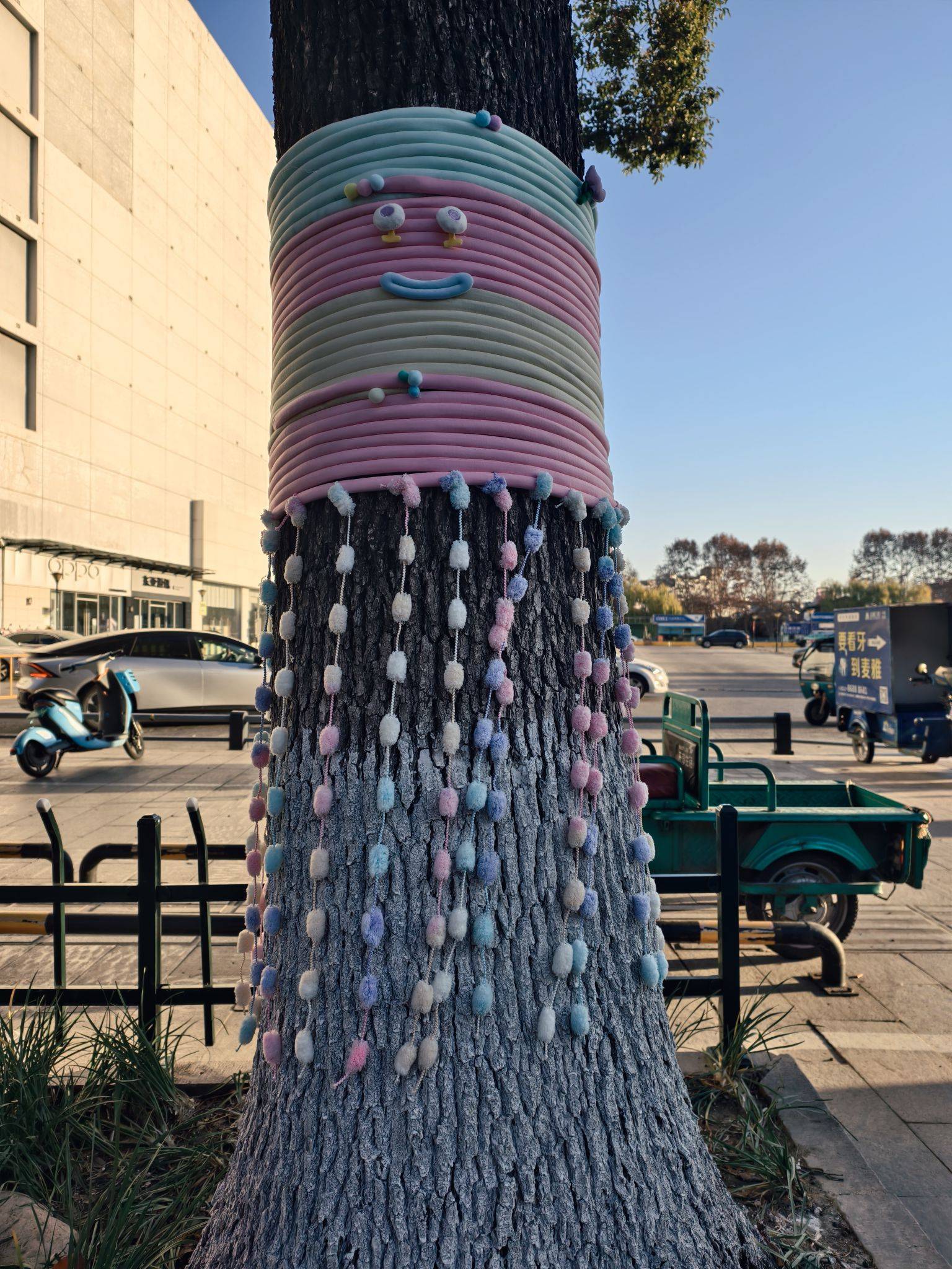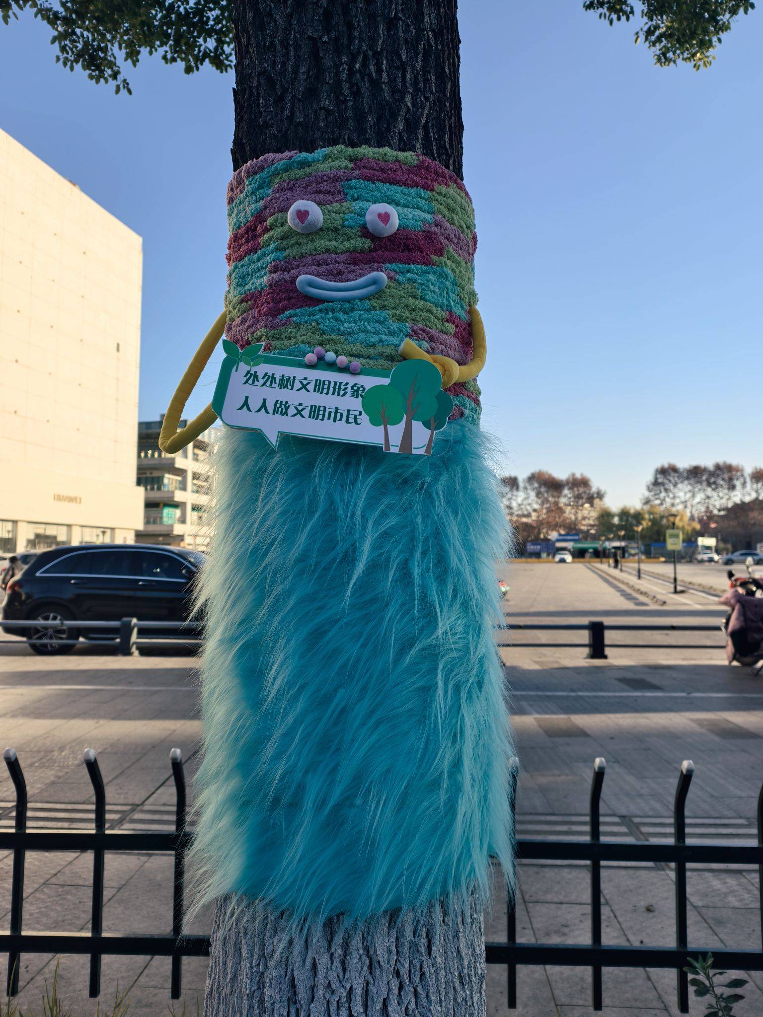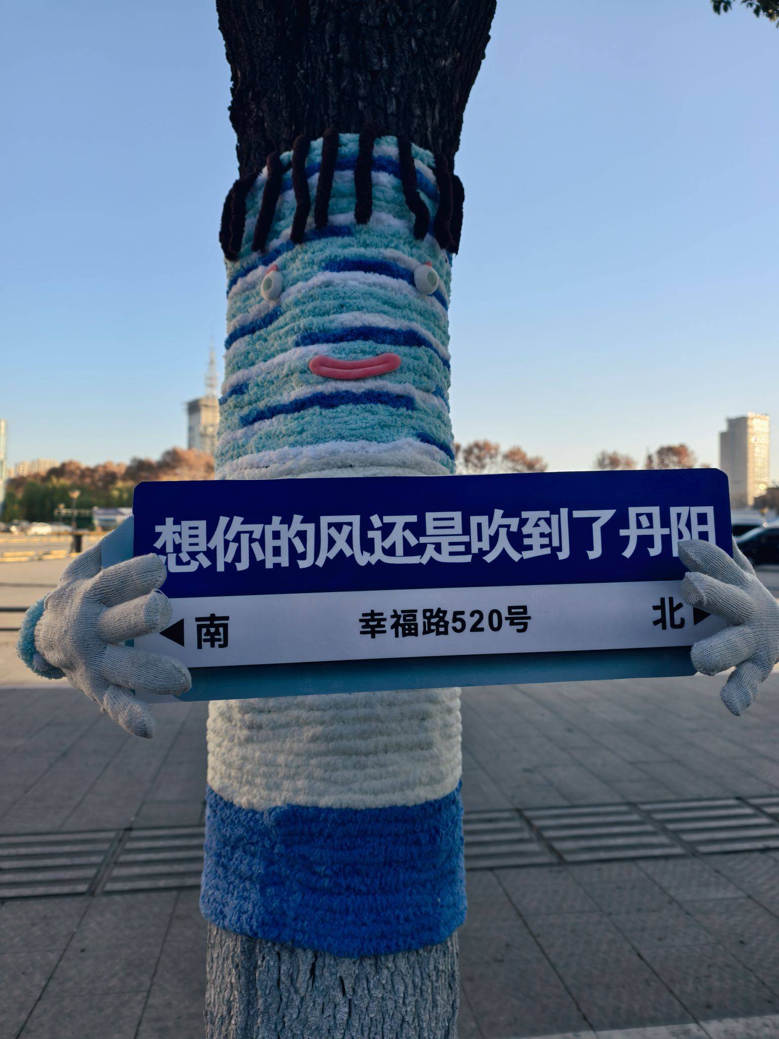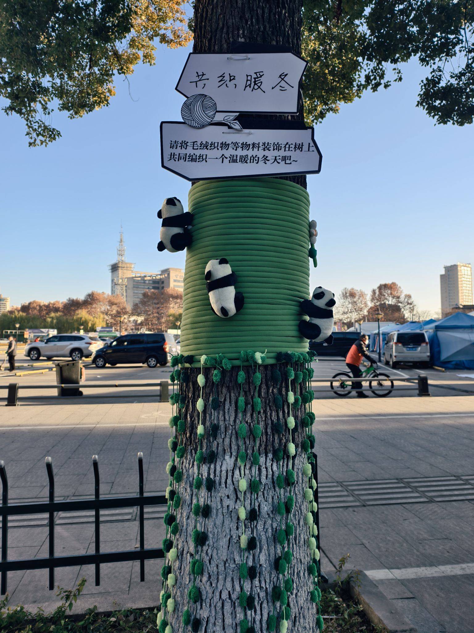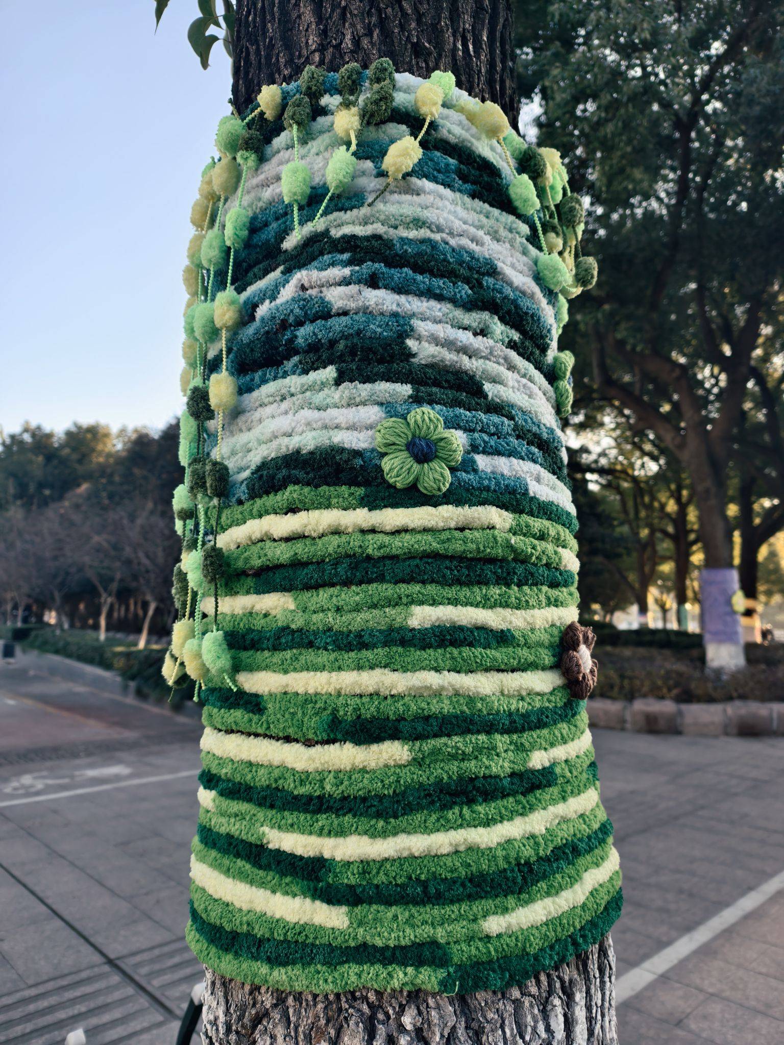 道路旁的大树穿“新衣”了,可可爱爱~