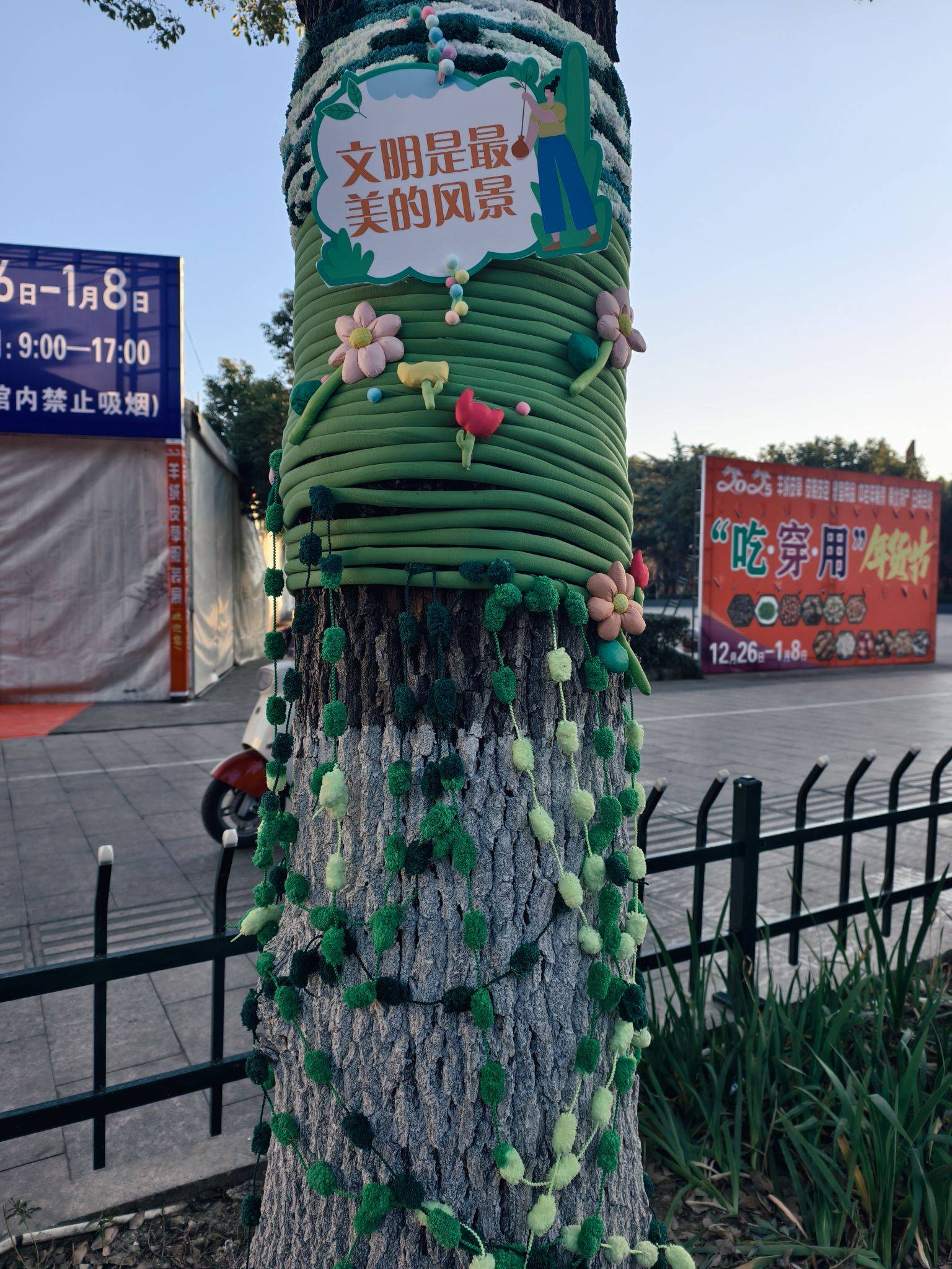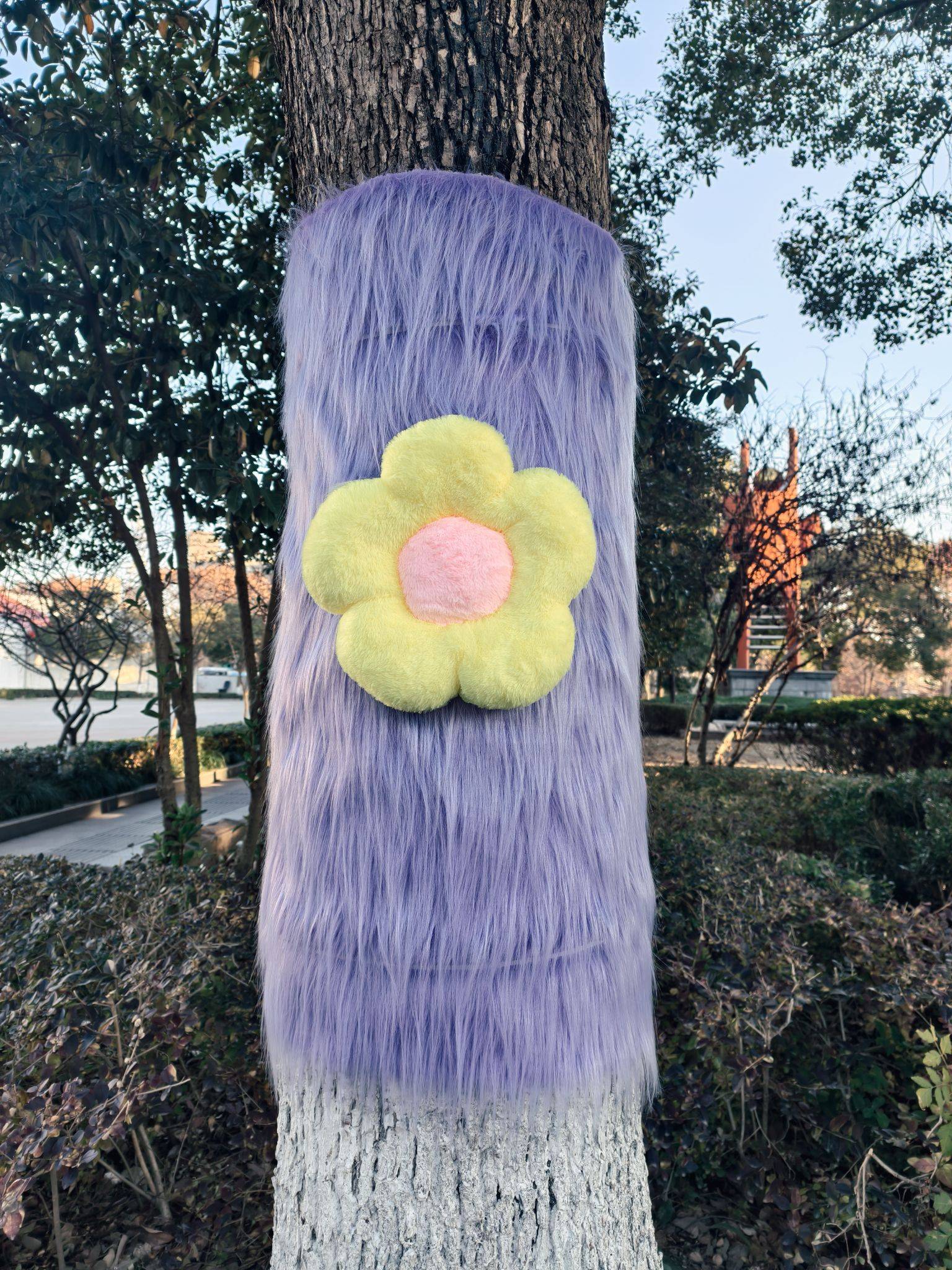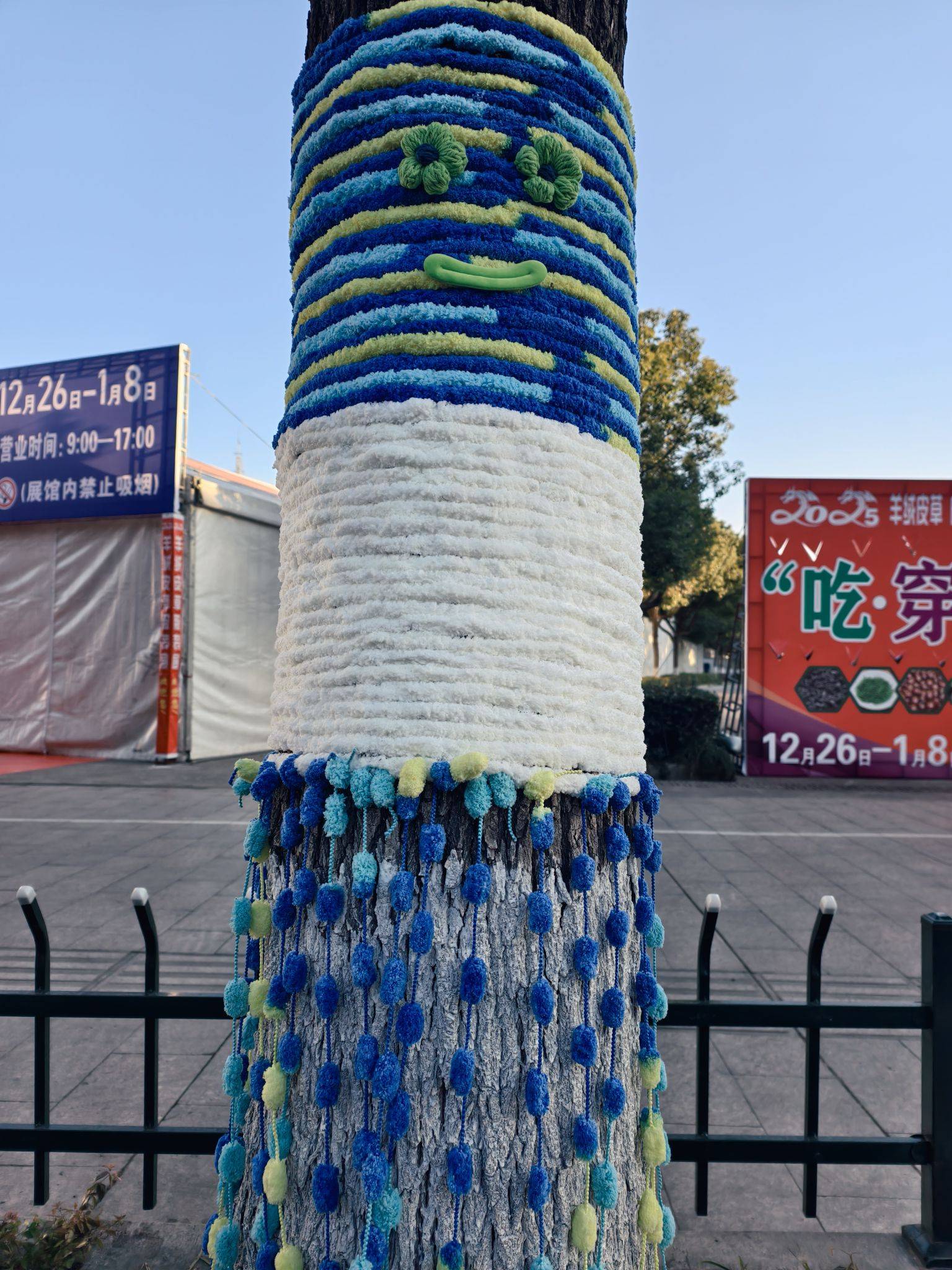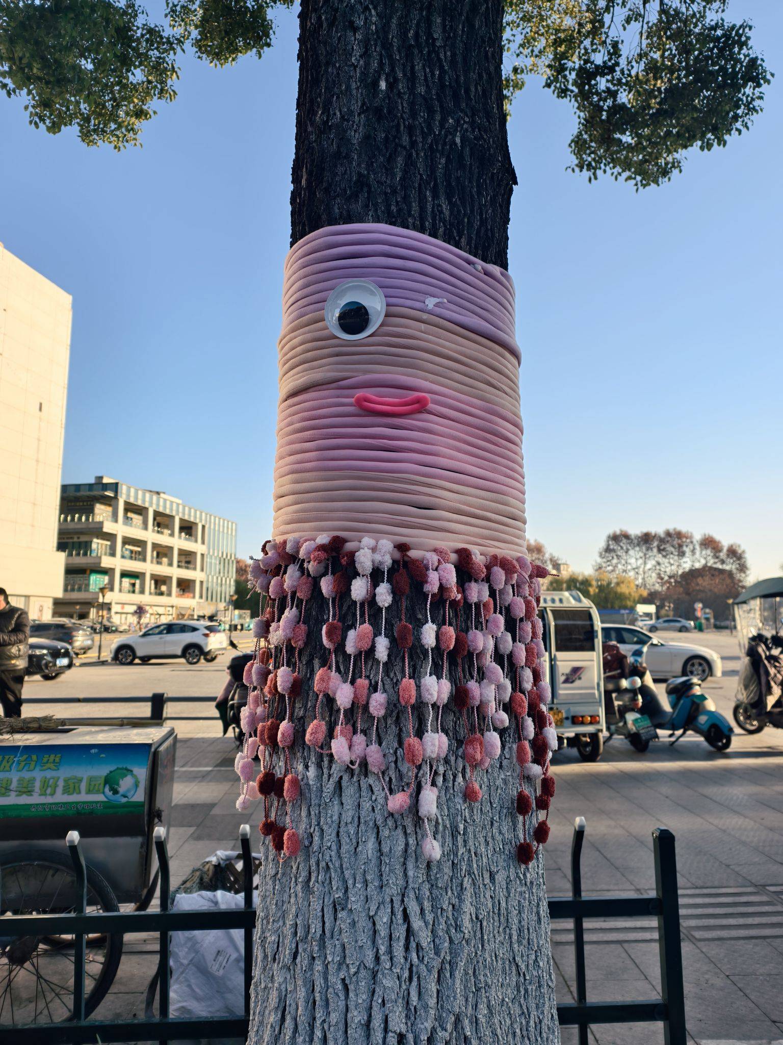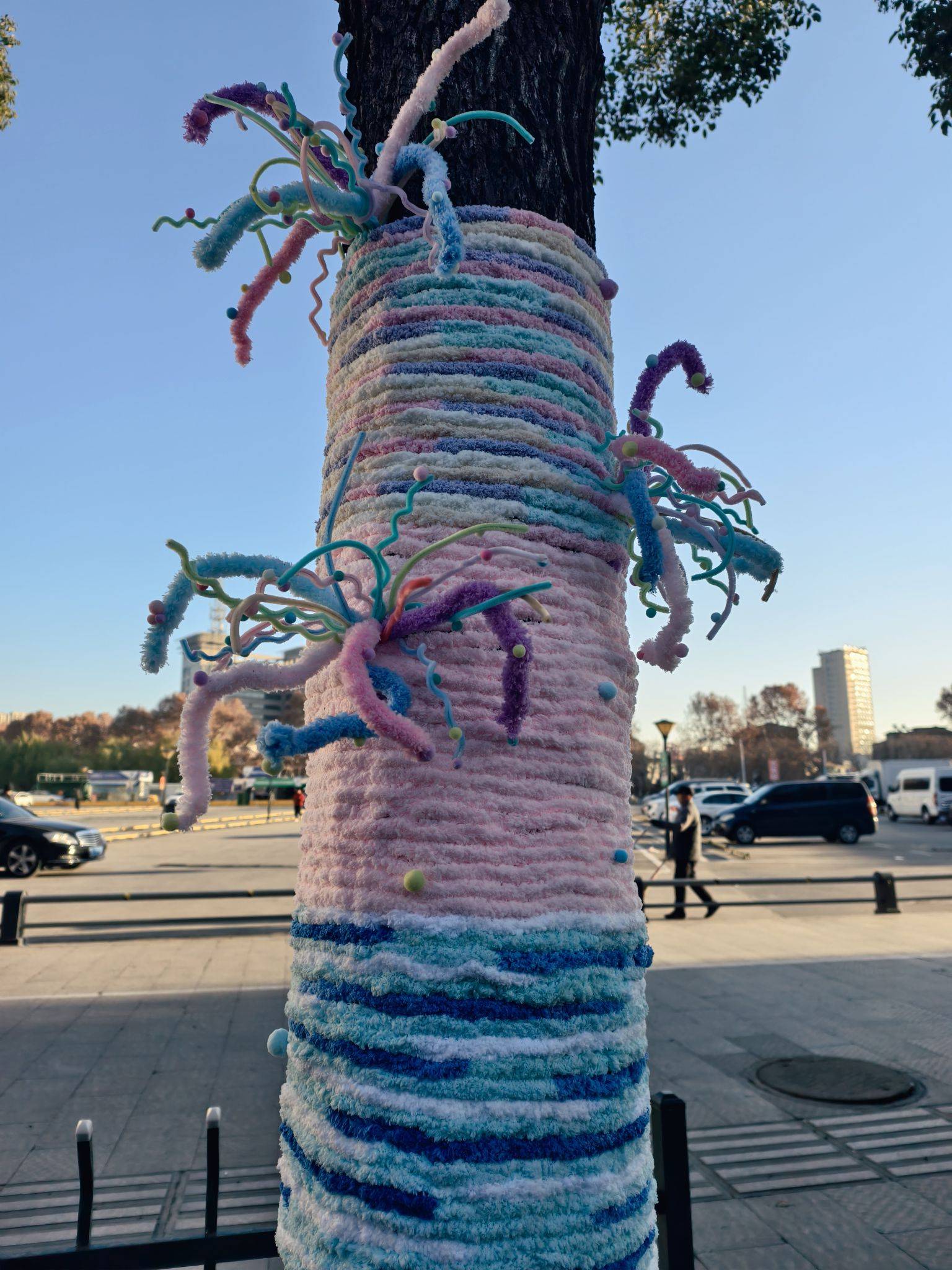 道路旁的大树穿“新衣”了,可可爱爱~