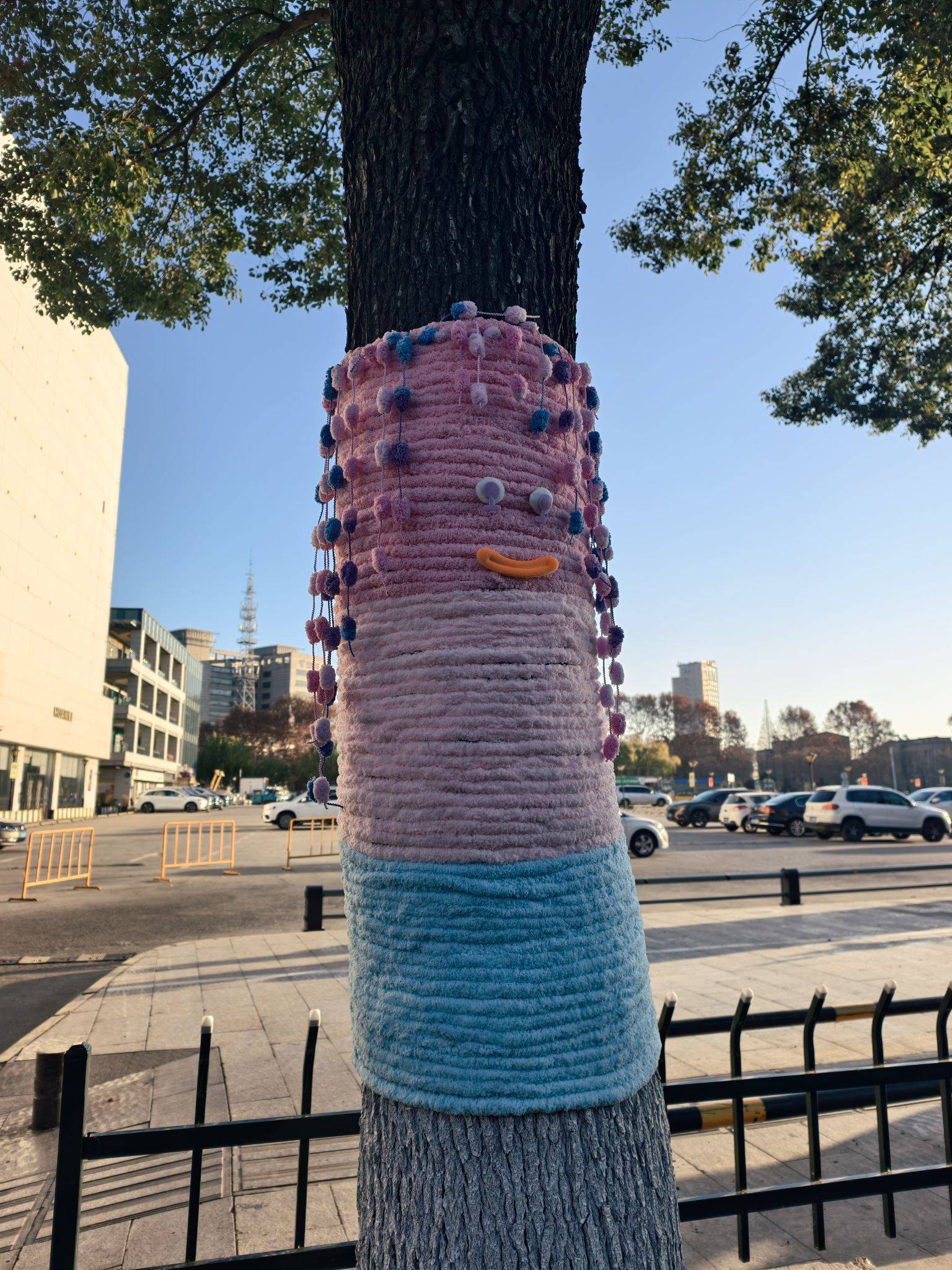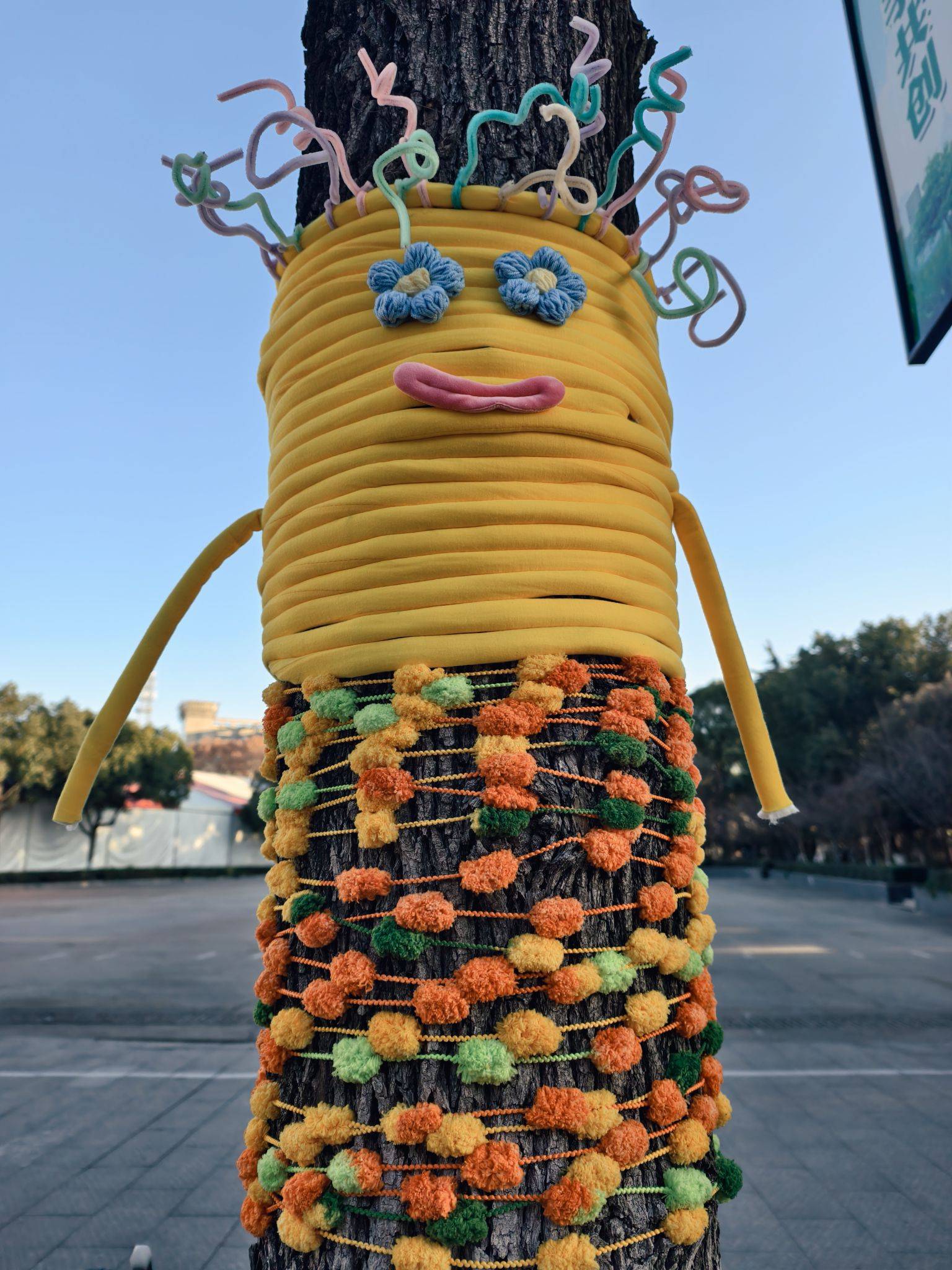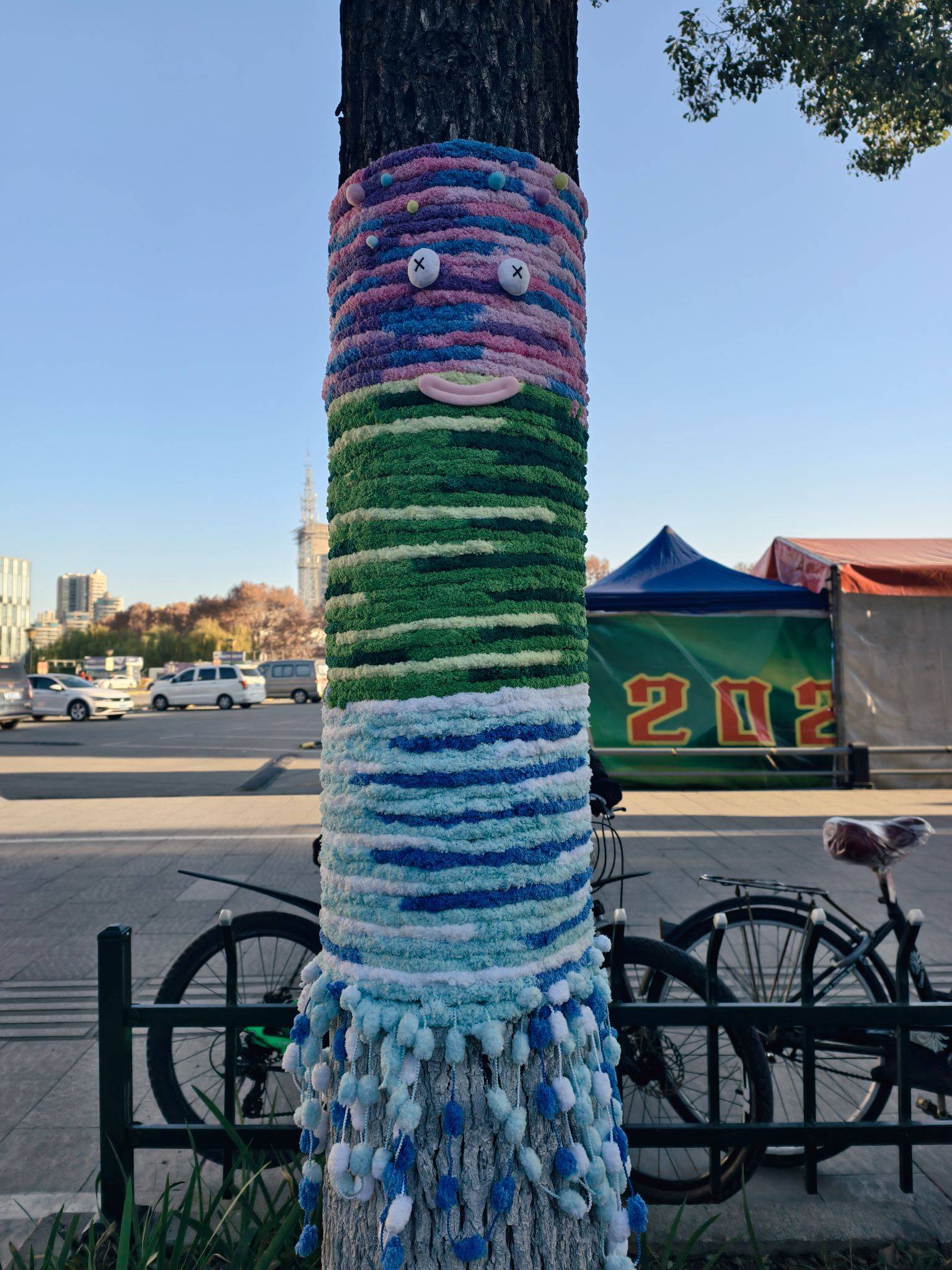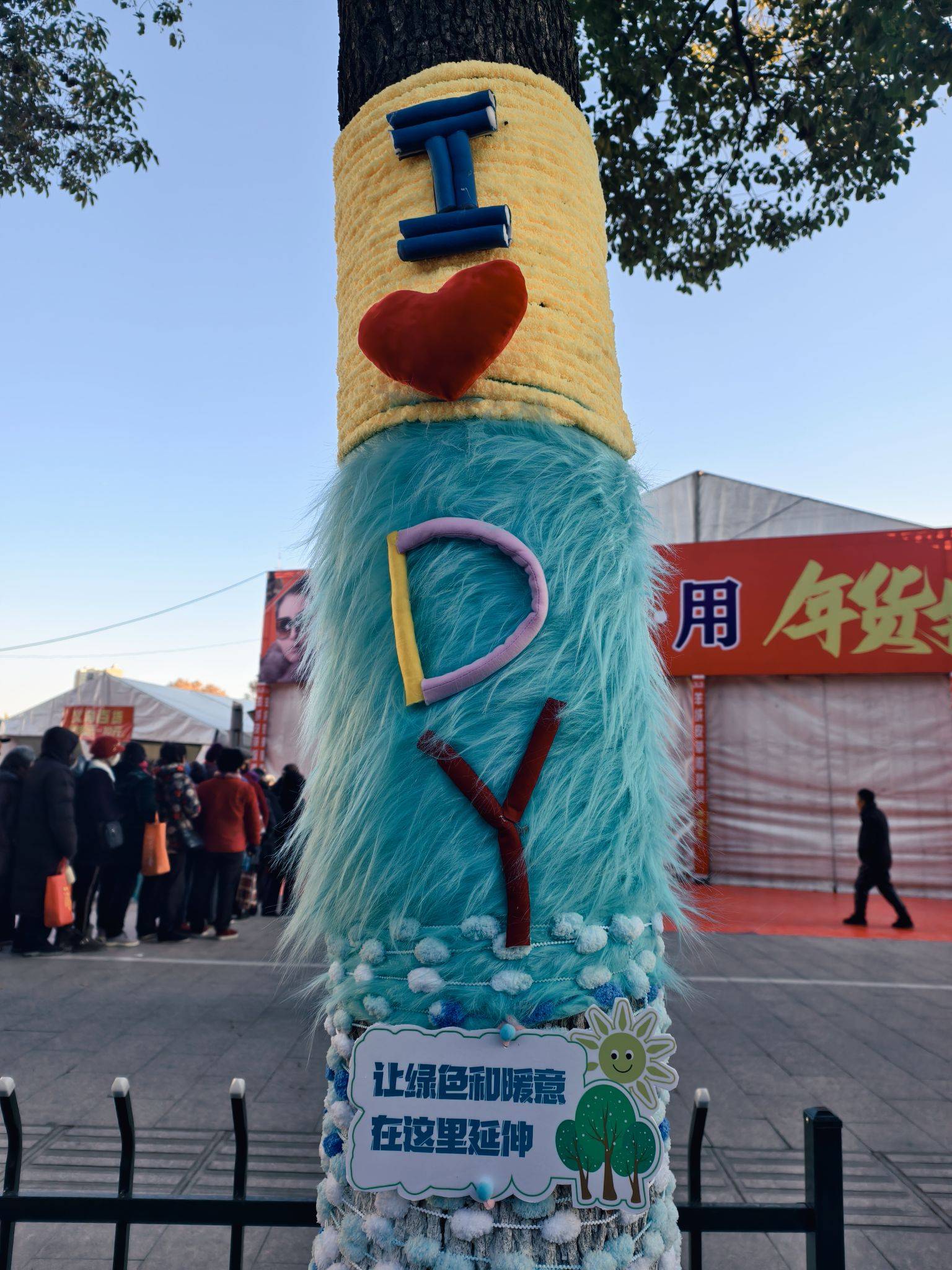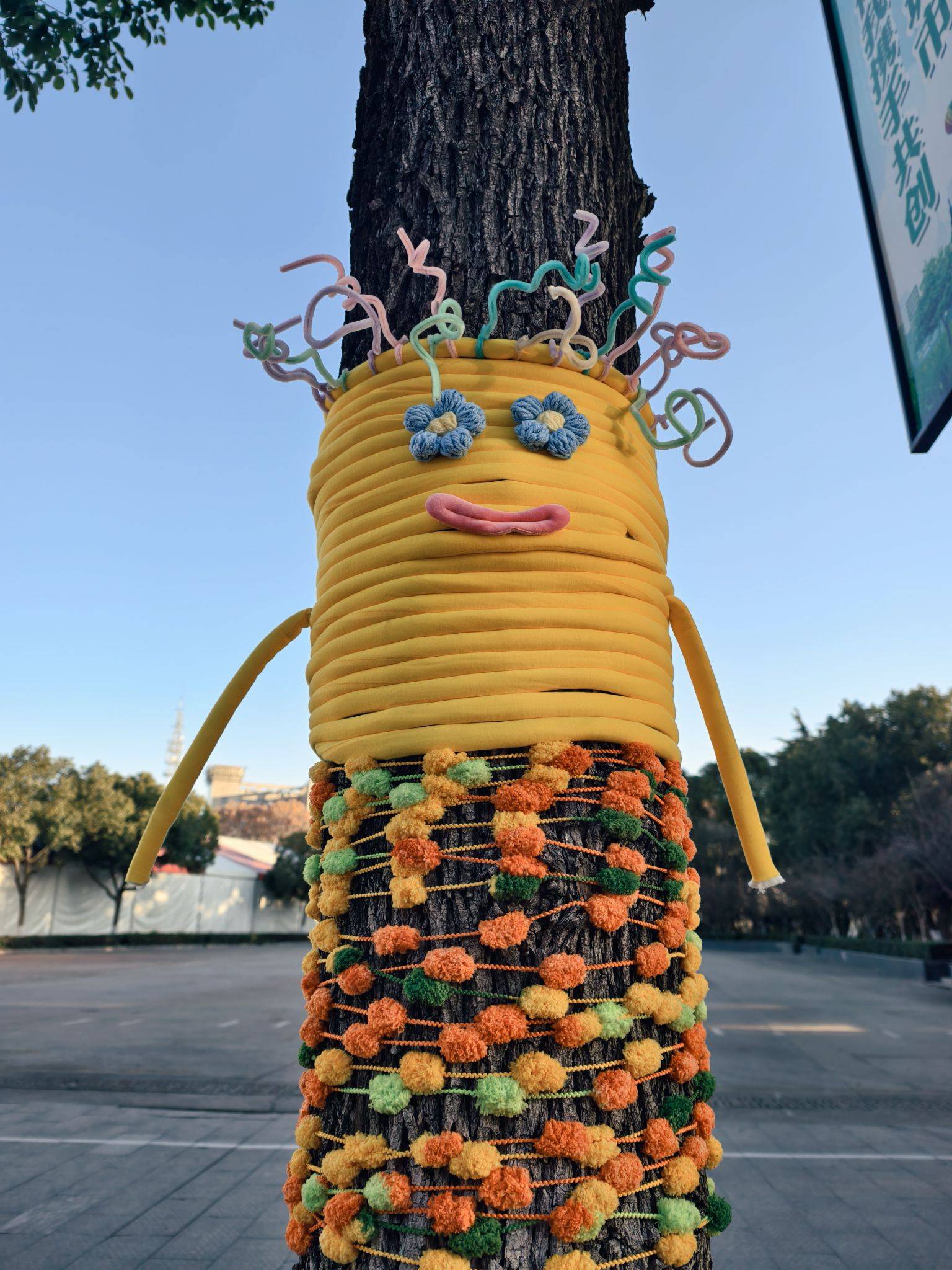 道路旁的大树穿“新衣”了,可可爱爱~