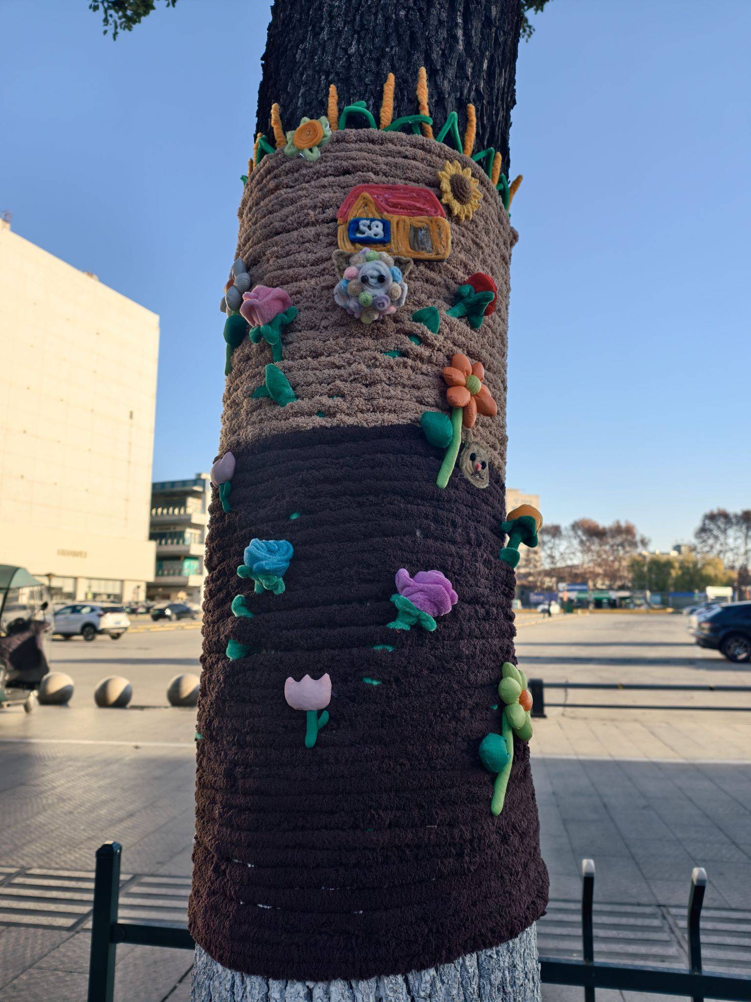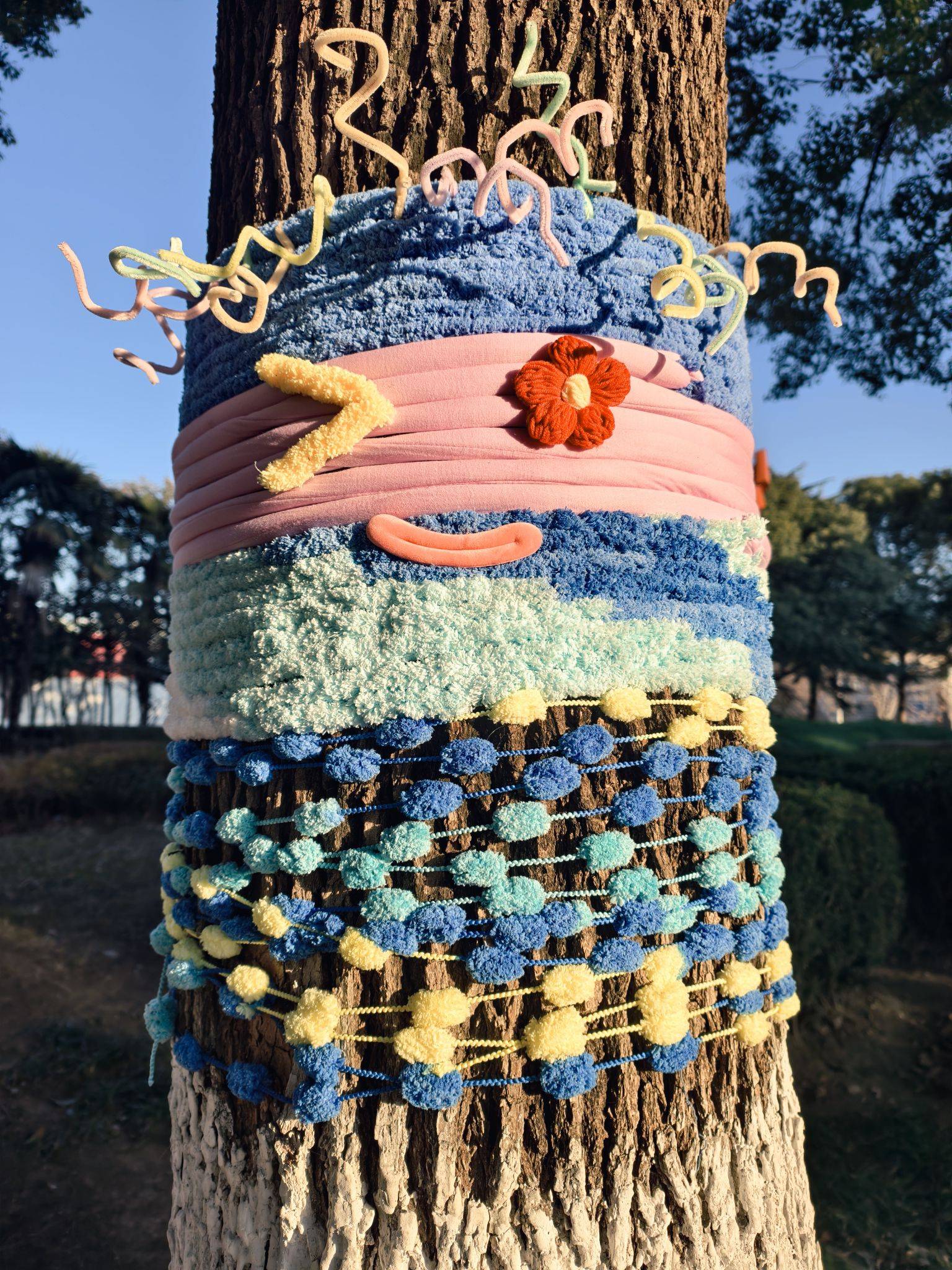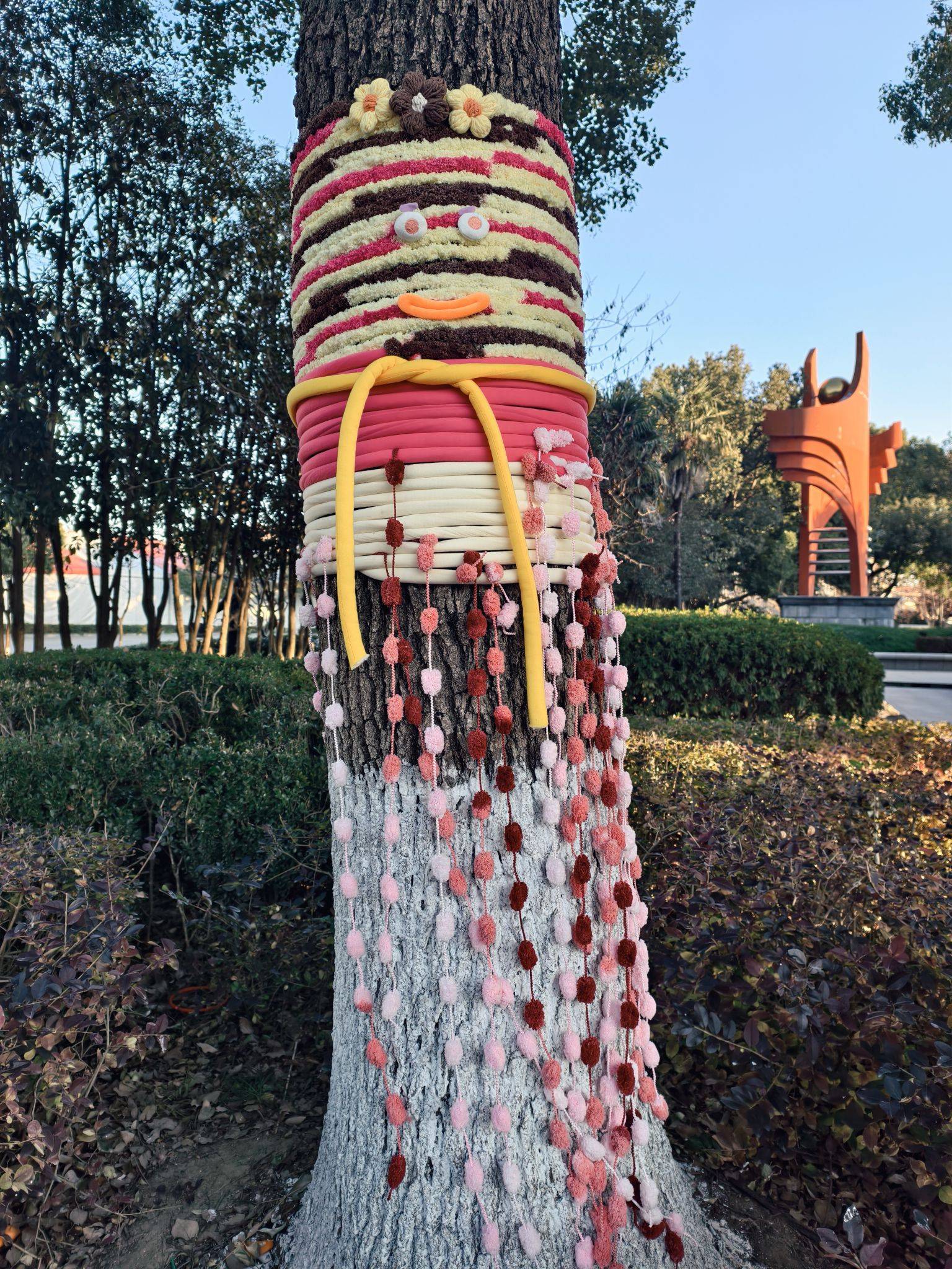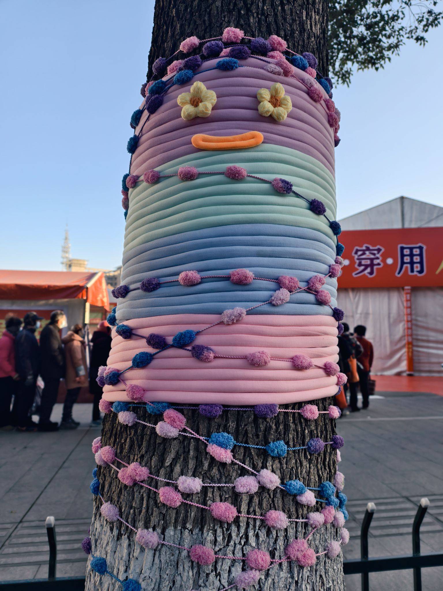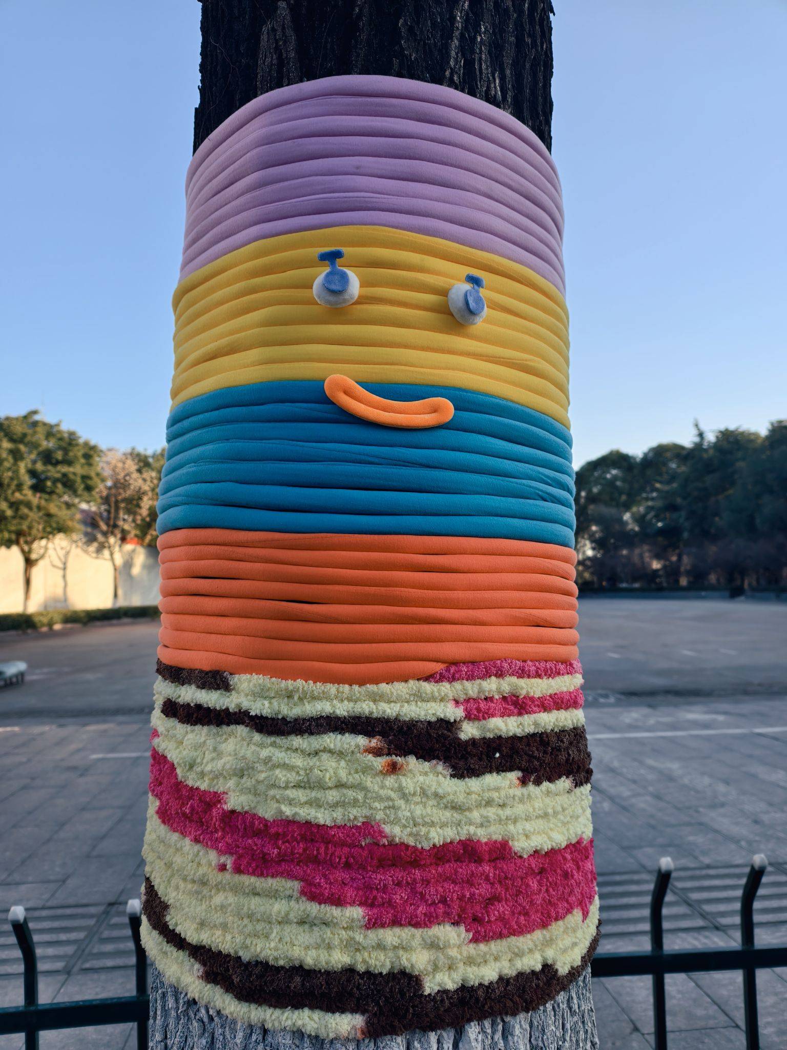 道路旁的大树穿“新衣”了,可可爱爱~
