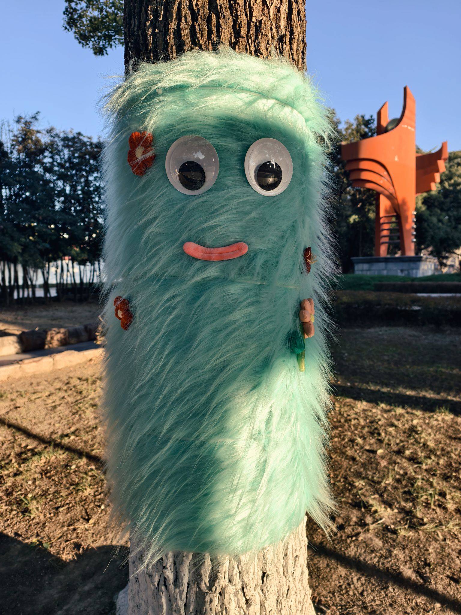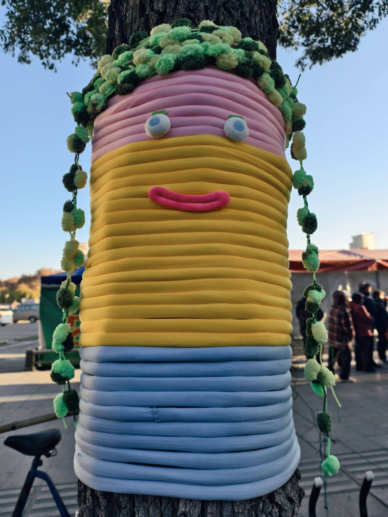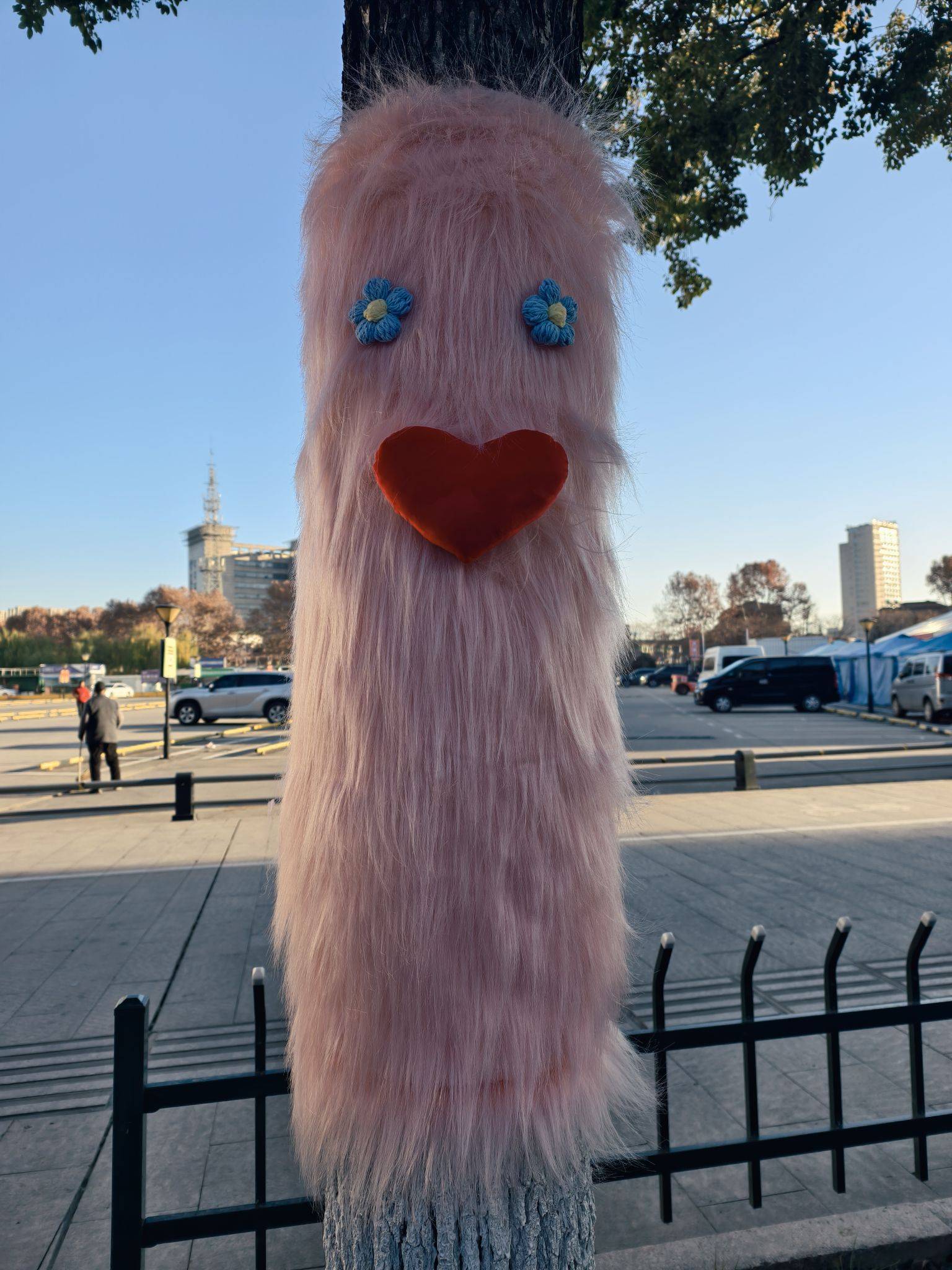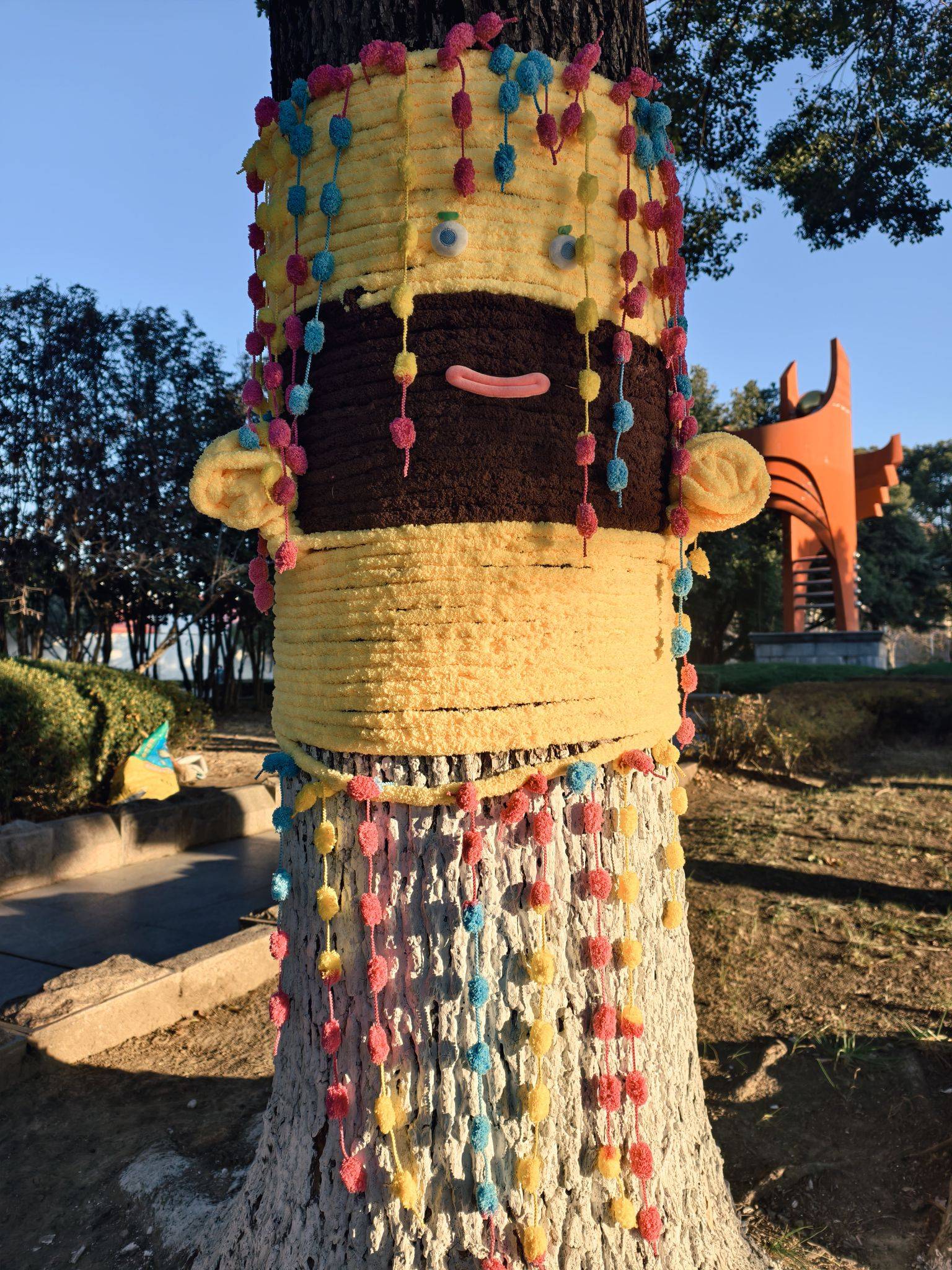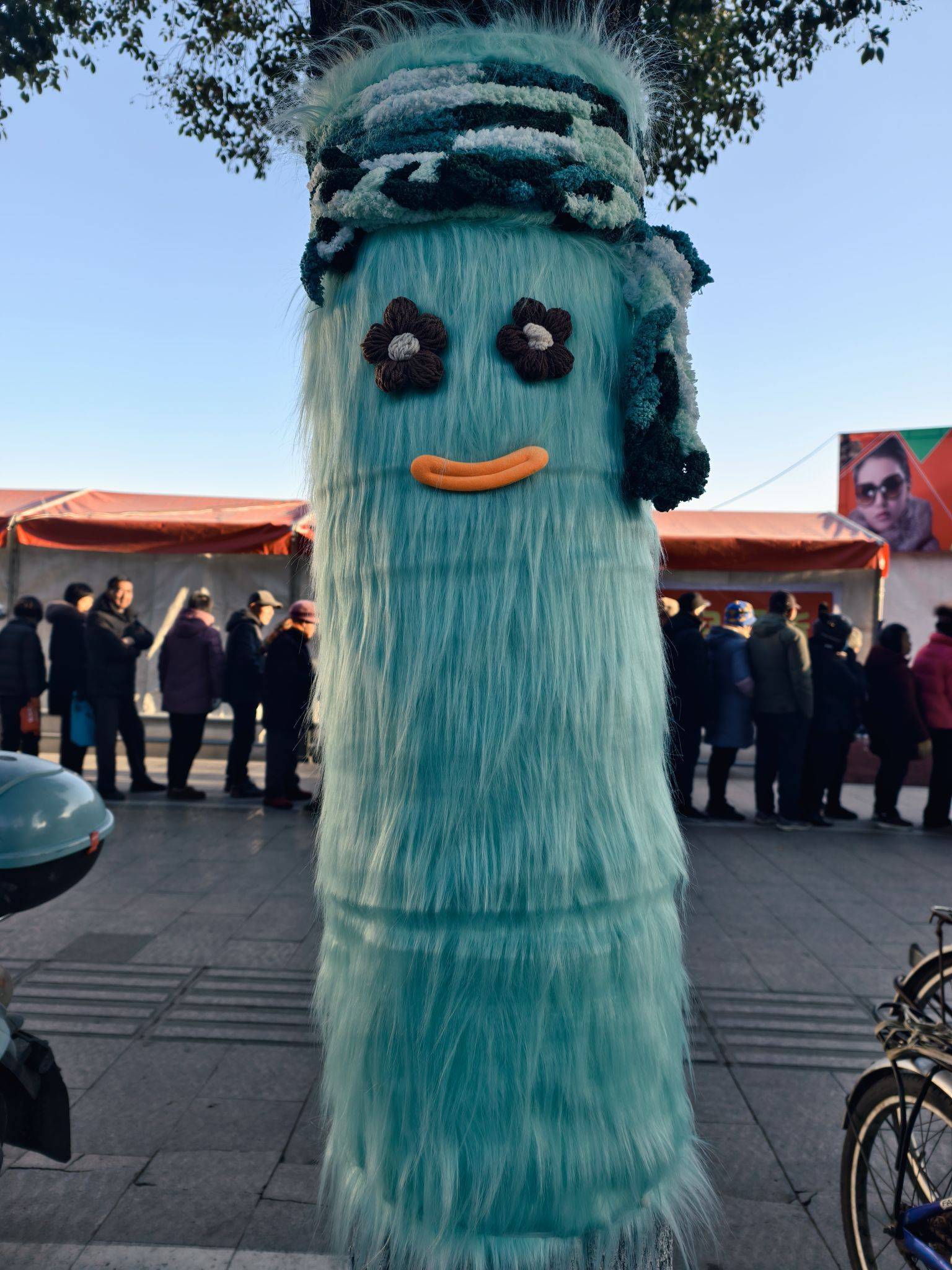 道路旁的大树穿“新衣”了,可可爱爱~