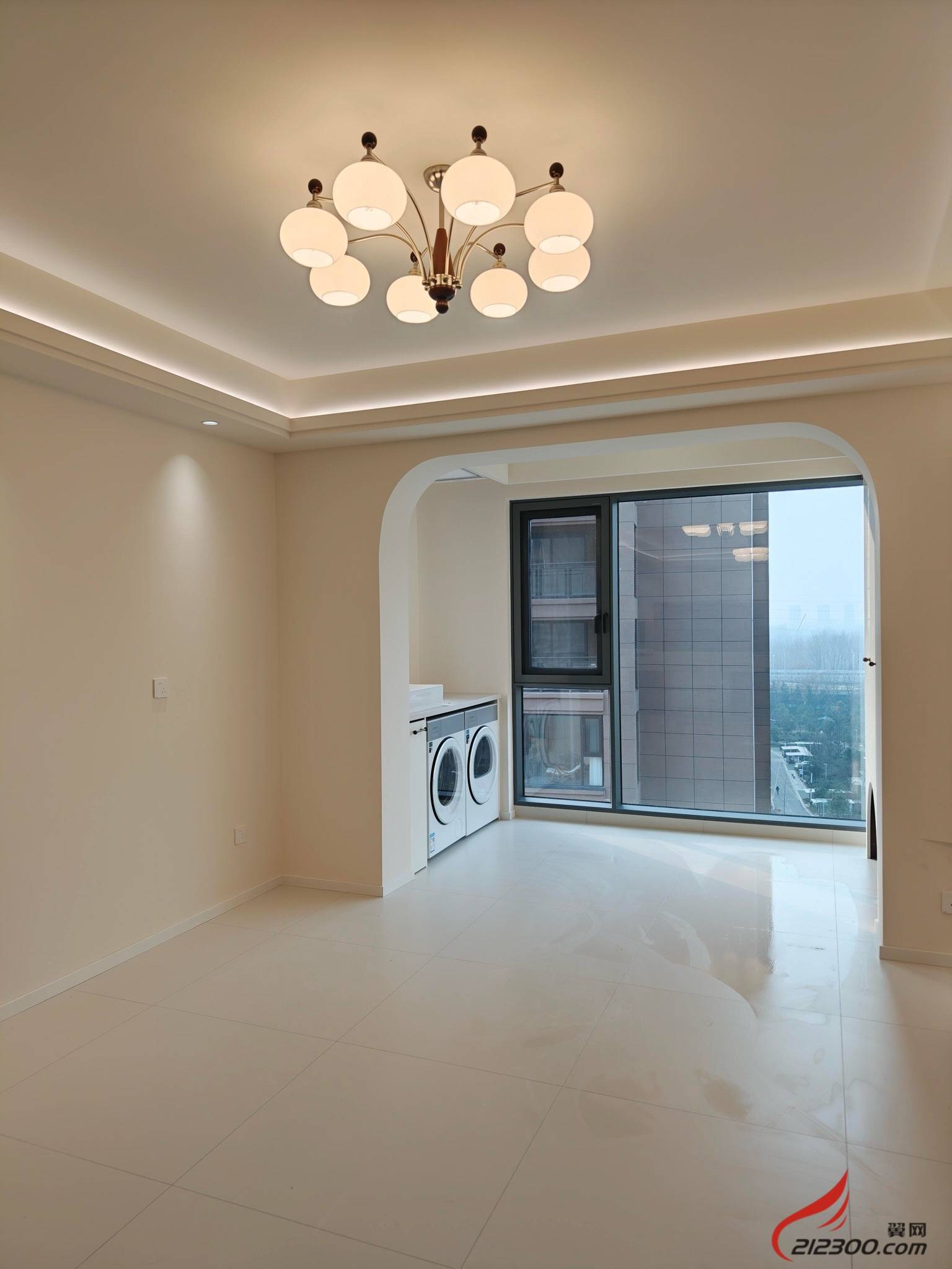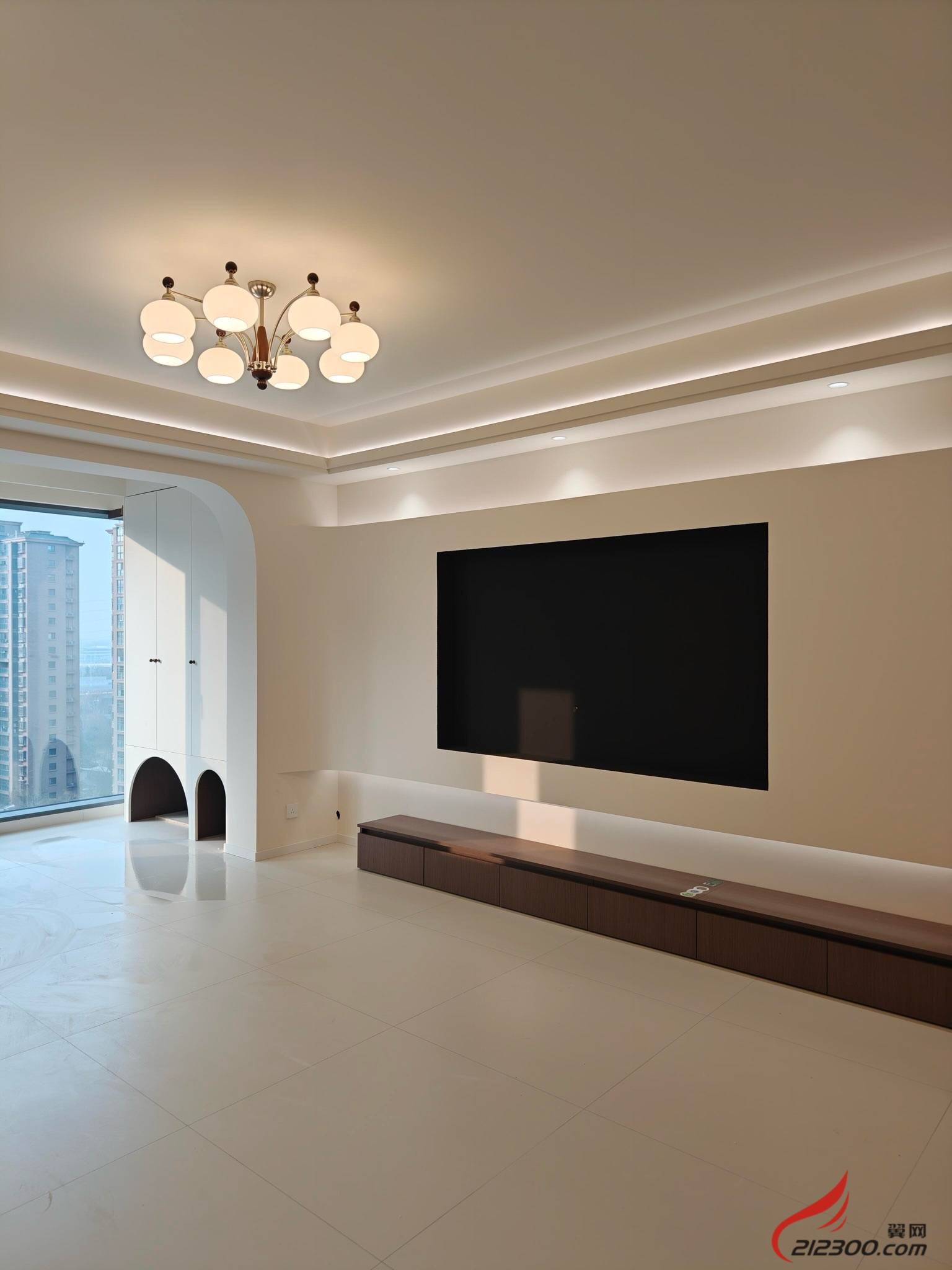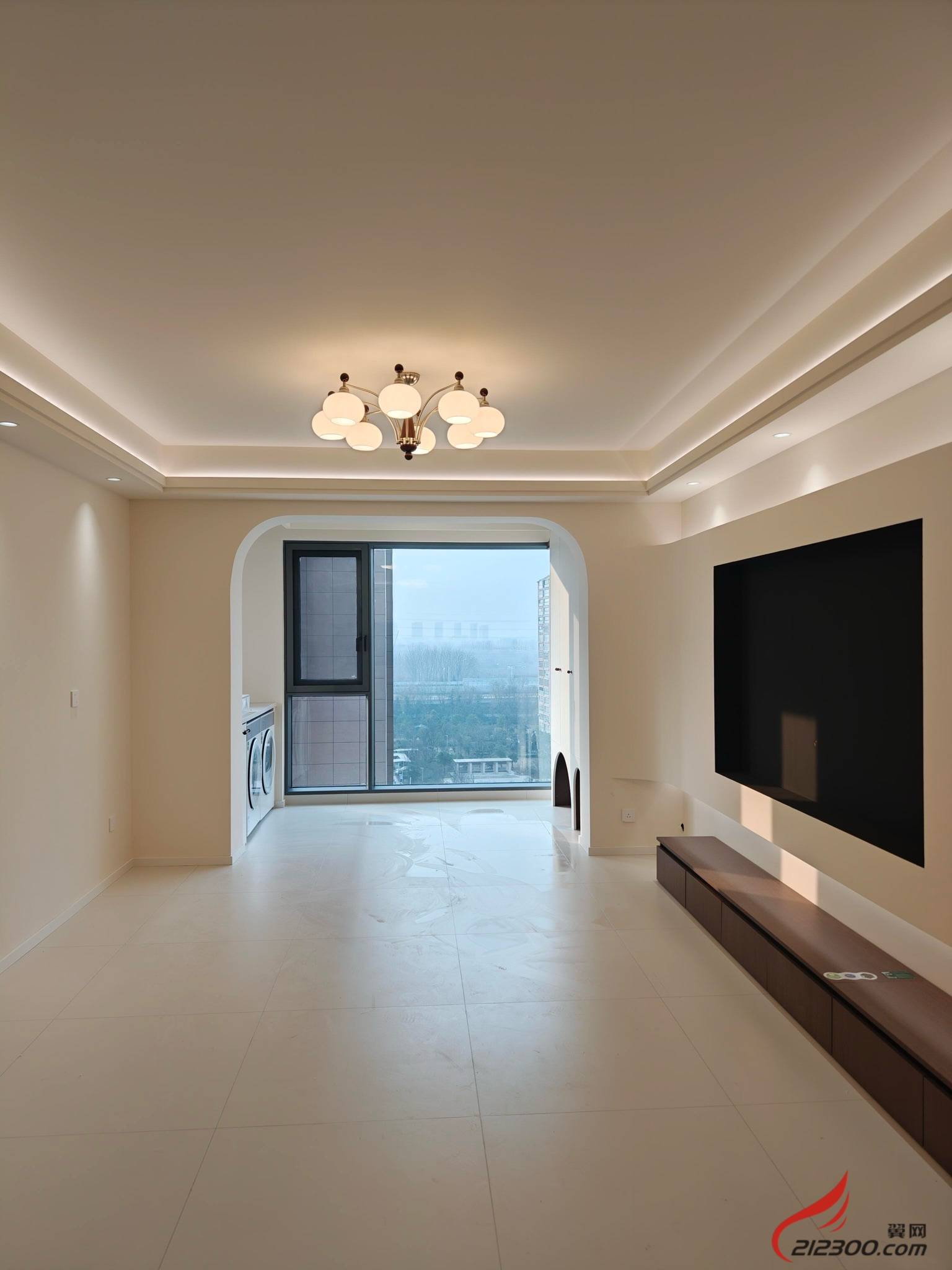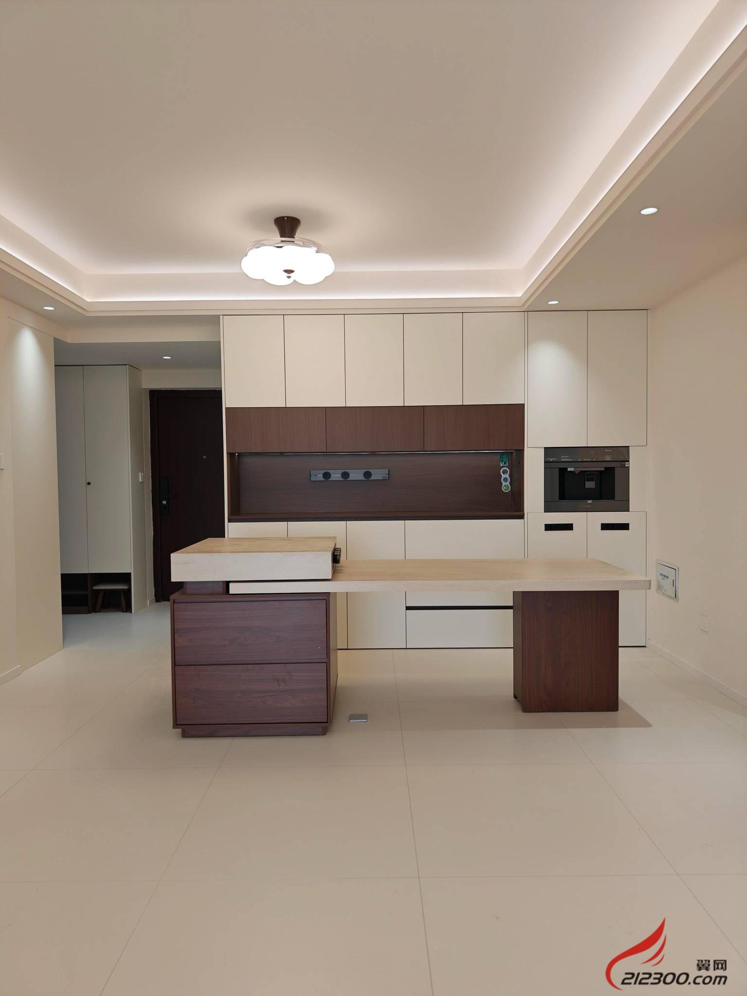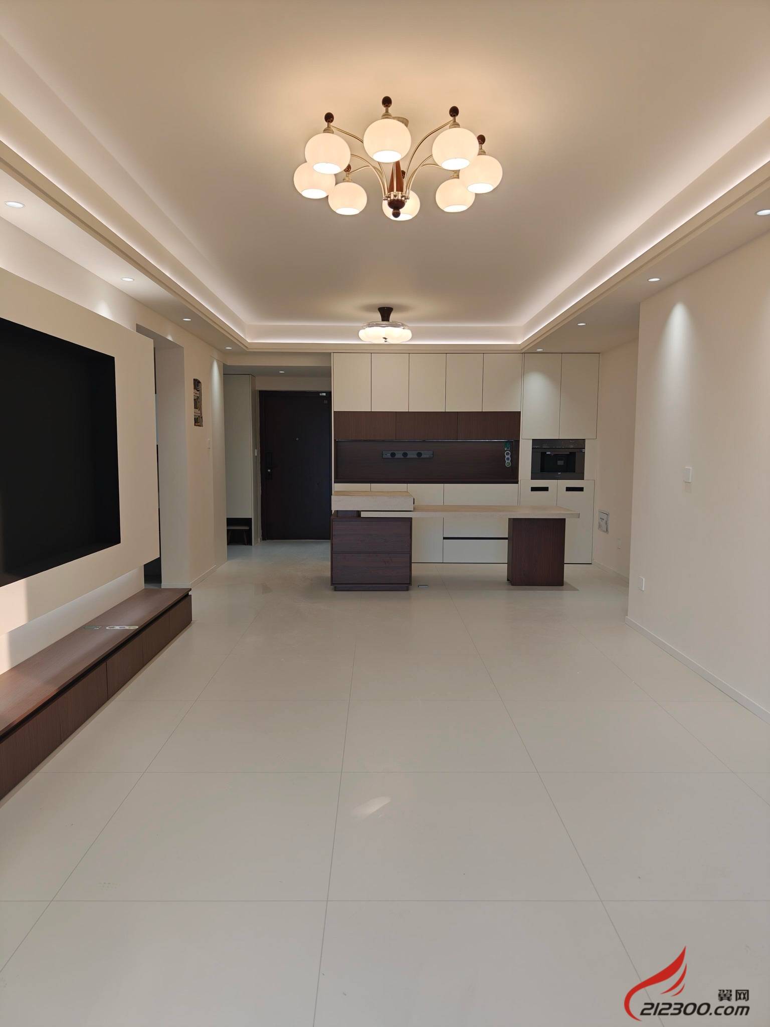 3. 光影之诗:无主灯设计+通铺地砖,拉伸空间感