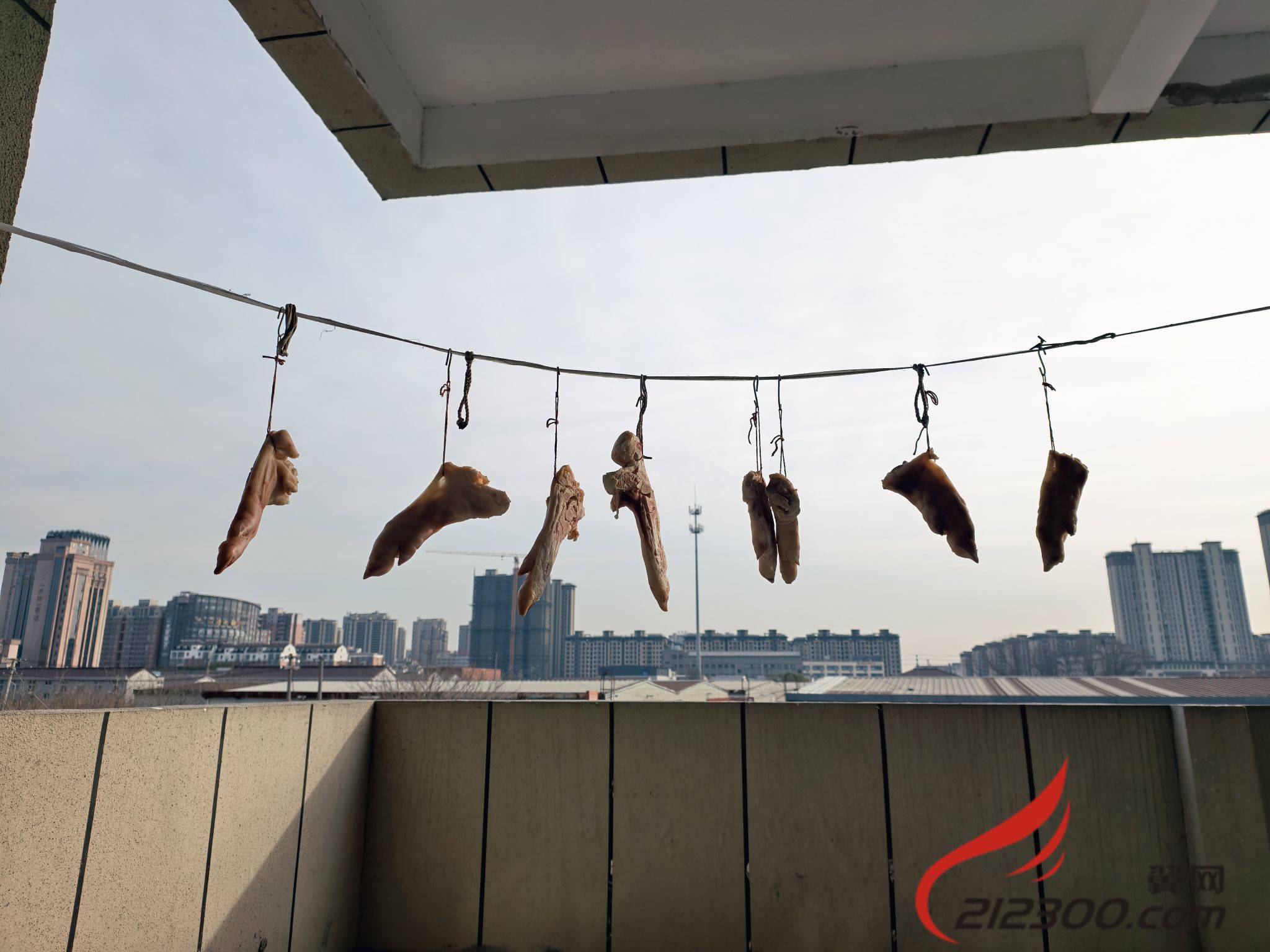 见过晒肠、晒肉、晒鱼的,还是第一次见晒猪蹄的
