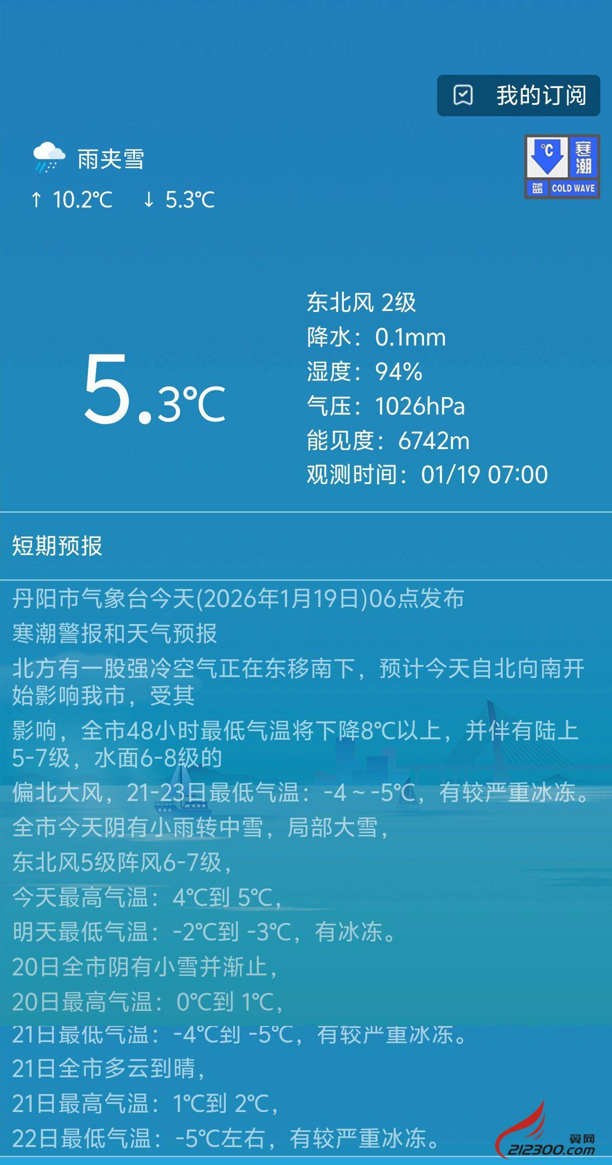 寒潮警报和天气预报