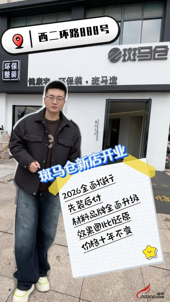 斑马仓家装体验新店已迁至西二环路888号,先装后付,工艺材料升级不加价,欢迎参观
