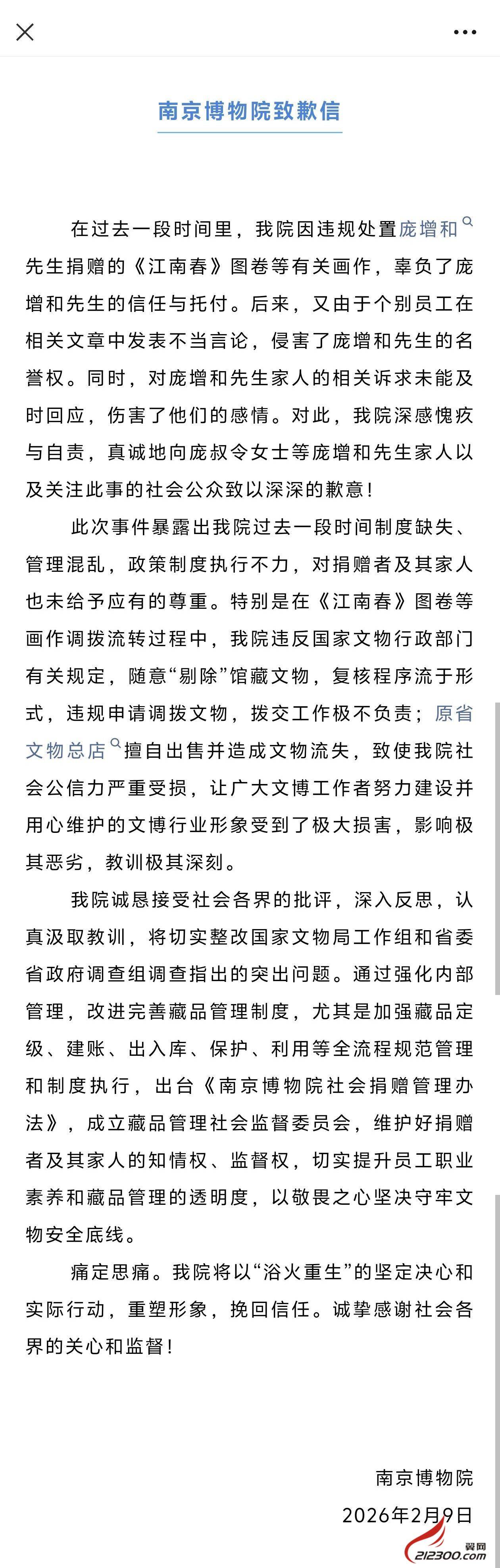 南京博物院致歉信