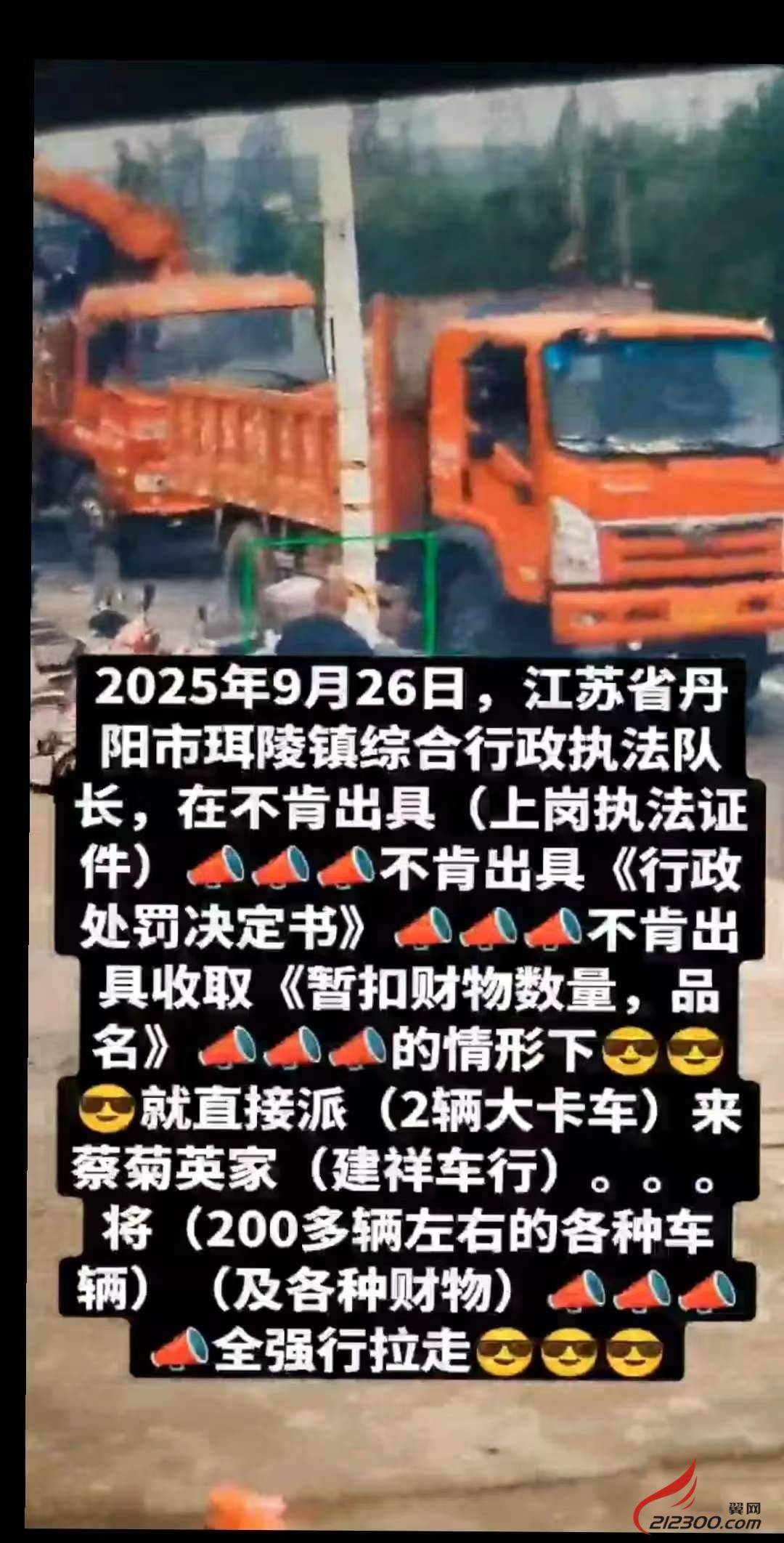 丹阳市城管局(认定)属下执法者,这要穿上衣服,不需出具执法证件,法律文书就可收车