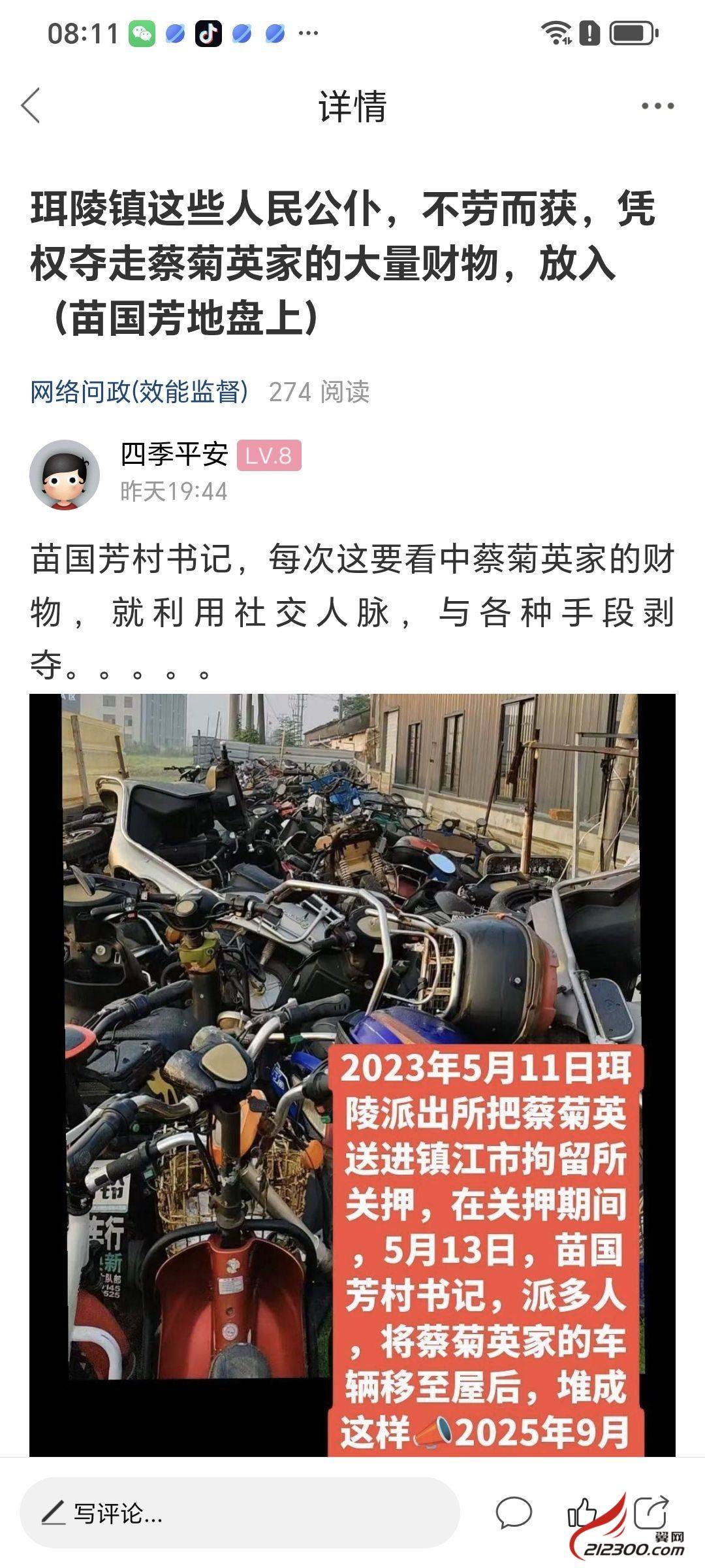 丹阳市城管局(唐宁锋)局长,这4个多月却一直支持眭涛中队长,滥用职权,目中无法,白白剥夺拉走蔡菊英家的大量财物的行为。。。今天唐宁锋局长(应该)给眭涛中队长,颁发(鼓励)年终大奖才行。。。。。让市民们一起关注好此事件