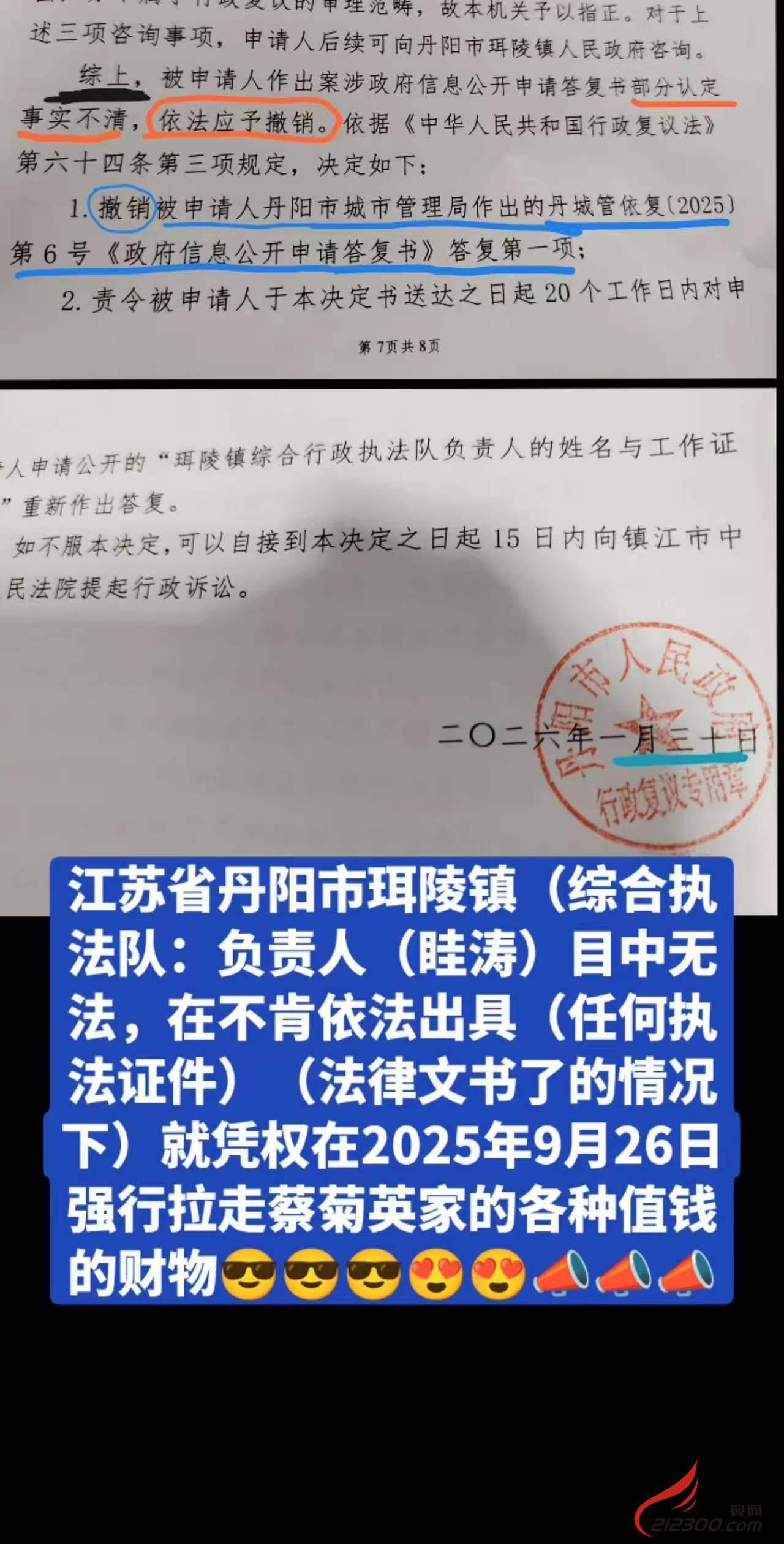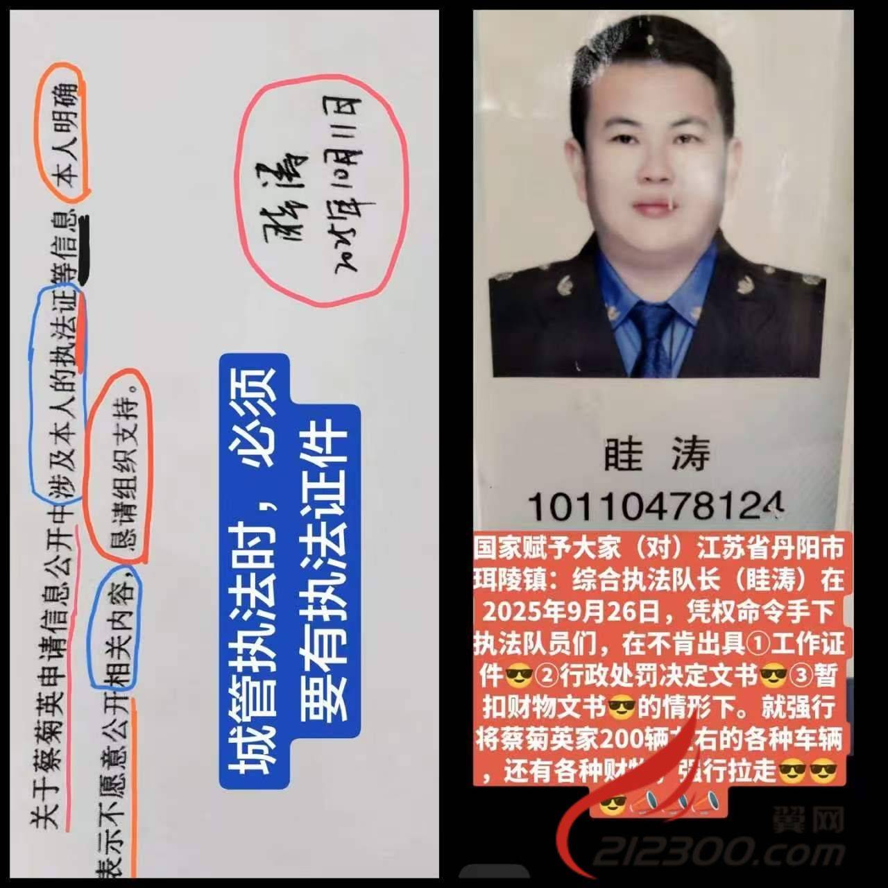 珥陵镇综合执法队长:眭涛目中无法2025年在不肯依法出具法律文书下就剥夺百姓财物
