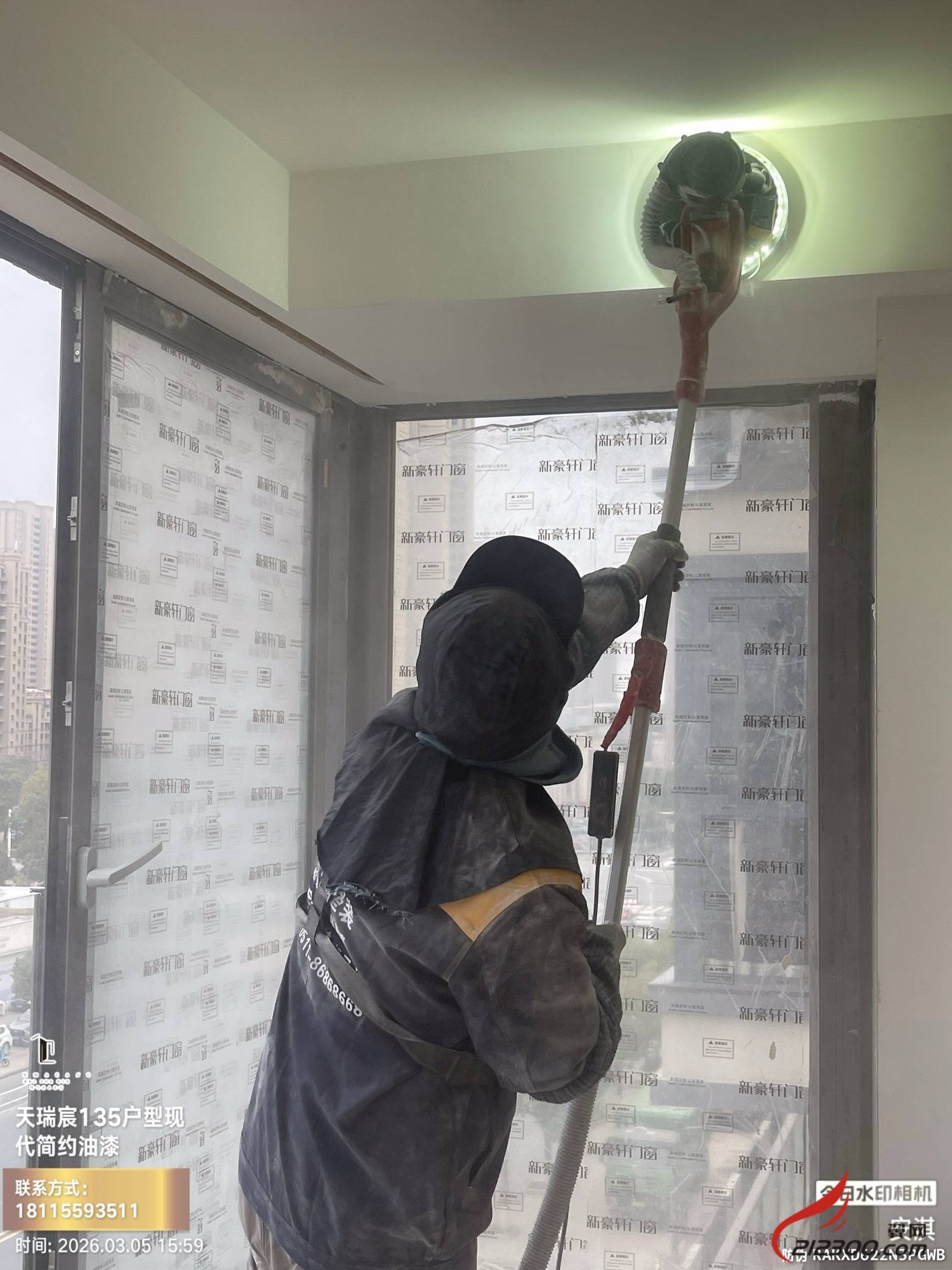 油漆阶段:墙面打磨、底漆面漆,一遍不少。阴角直、阳角挺,摸上去光滑平整。