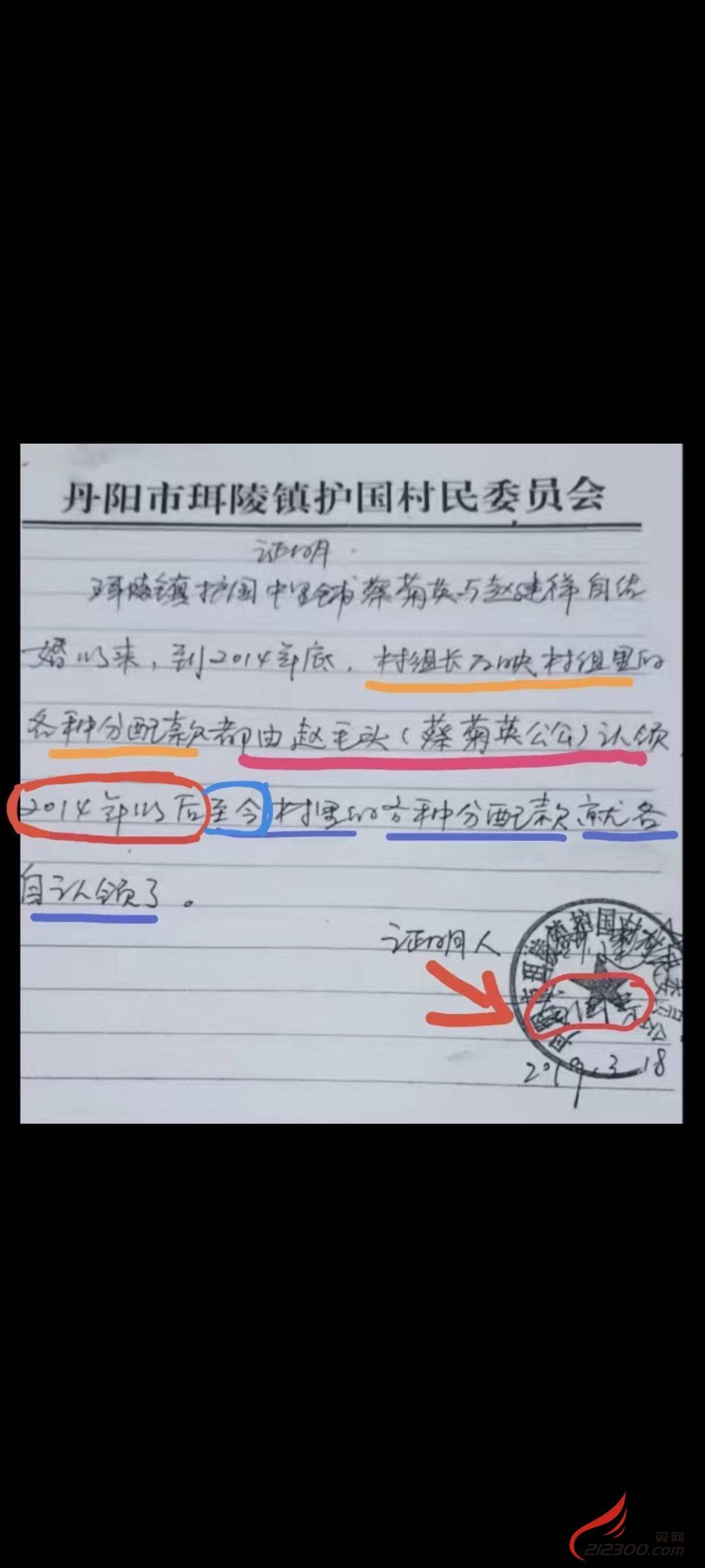 珥陵镇护国村(苗国芳村书记及村主任及党员)每次用权剥夺蔡菊英家村上的各种分配款