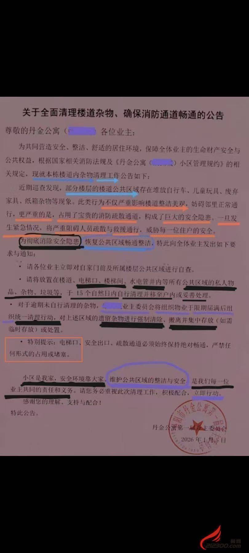 2026年中丹金社区打卬清理楼道中的杂物,这张清理通知书,己几个月了,行动又在何方???