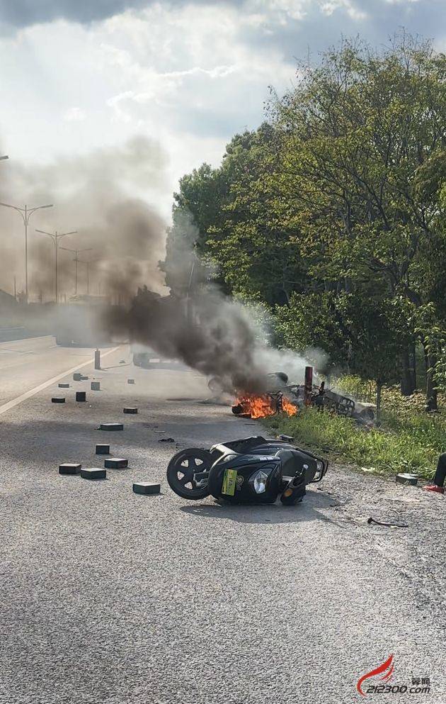 昨天,丹阳通港路上一车辆发生起火……
